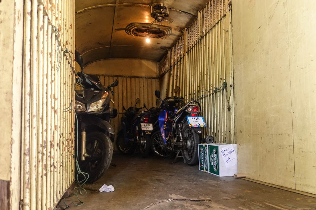 20. Заглянул внутрь - думал увидеть там те посылки, что принимают на перроне, но вместо этого внутри стояло несколько мотоциклов. Интересно, что вагон разделен перегородкой вдоль, за стеной осталась 1/3 пространства. Может раньше он был купейным?