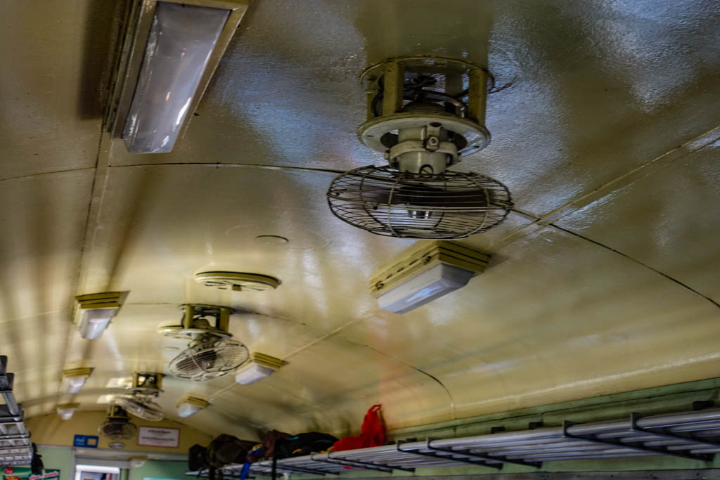 29. Внутри стоит жара, пространство не кондиционируется, а вентиляторы на потолке не сильно спасают ситуацию. Хотя, кто знает - может без них было бы намного хуже.