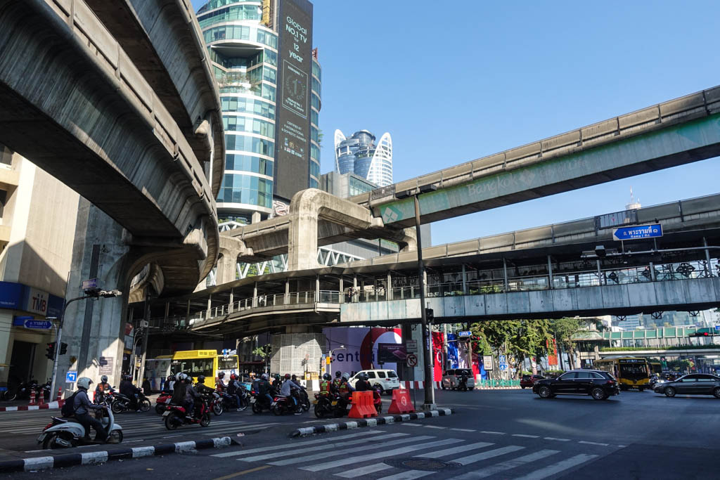 1. В городе есть три разных системы метро, и они не очень хорошо между собой интегрированы. Я специально забронировал отель "недалеко" от одной из остановок, но и это оказалось десятиминутной прогулкой. Линии BTS (их всего две) проходят по эстакадам над главными улицами города, заслоняя небо пешеходам и водителям. В Бангкоке засорить центр города эстакадами - дело пустяковое.
