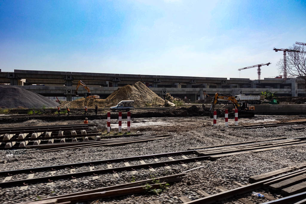 31. Пути к будущему центральному вокзалу подводят конечно же на бетонных эстакадах. Возле существующих линий растёт лес подпорок.