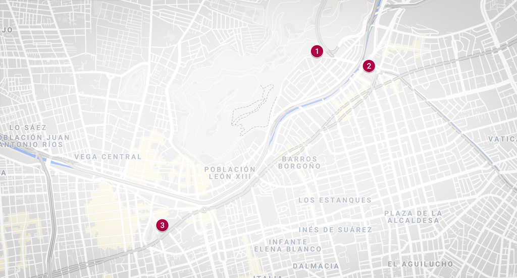 Вот я и поплатился сегодня за свою добродушность. Началось всё, разумеется с такси. Мы все вместе поднимались на канатной дороге на гору, что высится над Сантьяго, а после sdze решил поехать в отель, а мы с ещё одним товарищем - подняться на самую высокую смотровую площадку Латинской Америки (о ней отдельно напишу). Вот, я не поленился, вам карту составил: мы разъезжались из точки (1) - я в (2), а Яша в (3). При этом между (1) и (2) дистанция всего 1.3 км, можно пешком было бы дойти, но не хотелось время терять.