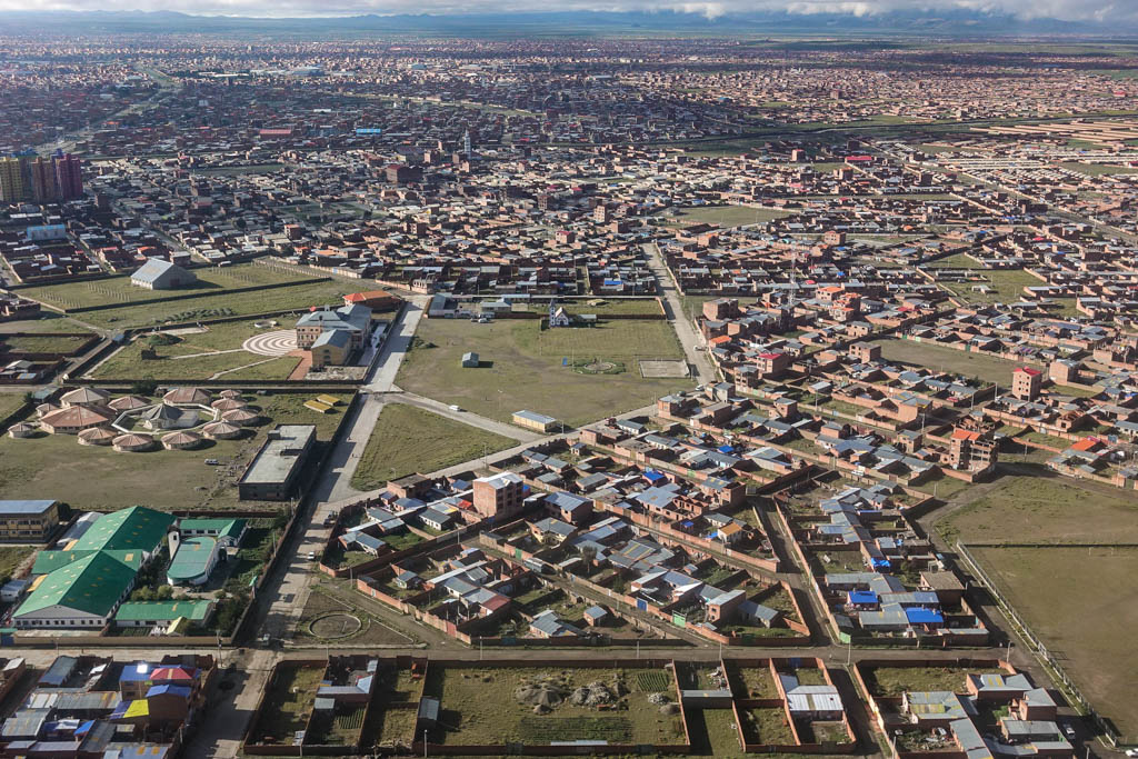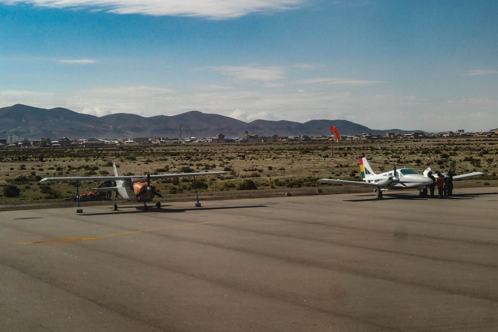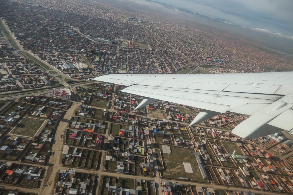 2. Взлетаем. Аэропорт Ла-Паса находится в пригороде по имени Эль-Альто. (Нет, никакого отношения к израильской авиакомпании он не имеет!) Раньше это был просто один из районов города, но в середине 1980х он объявил независимость и отделился. Если Ла-Пас расположен на очень неровном ландшафте, то Эль-Альто - это уже плоское высокогорье. Средняя высота здесь 4100м.