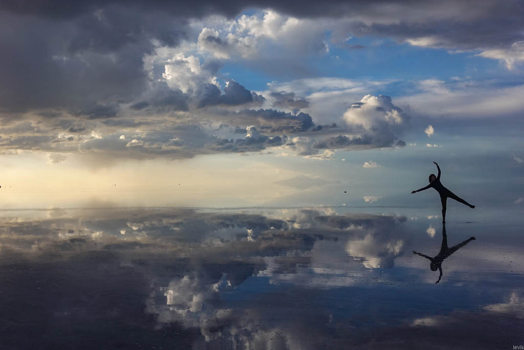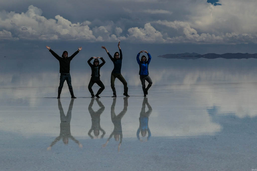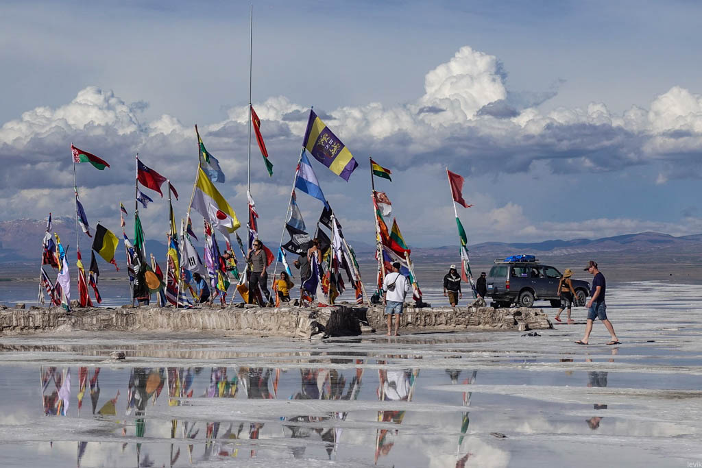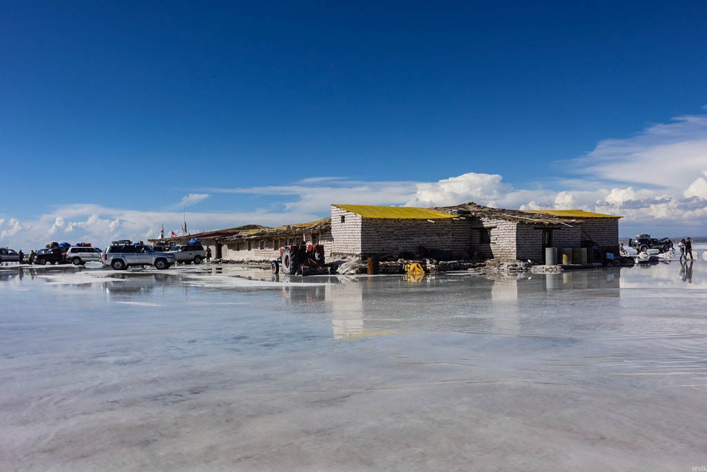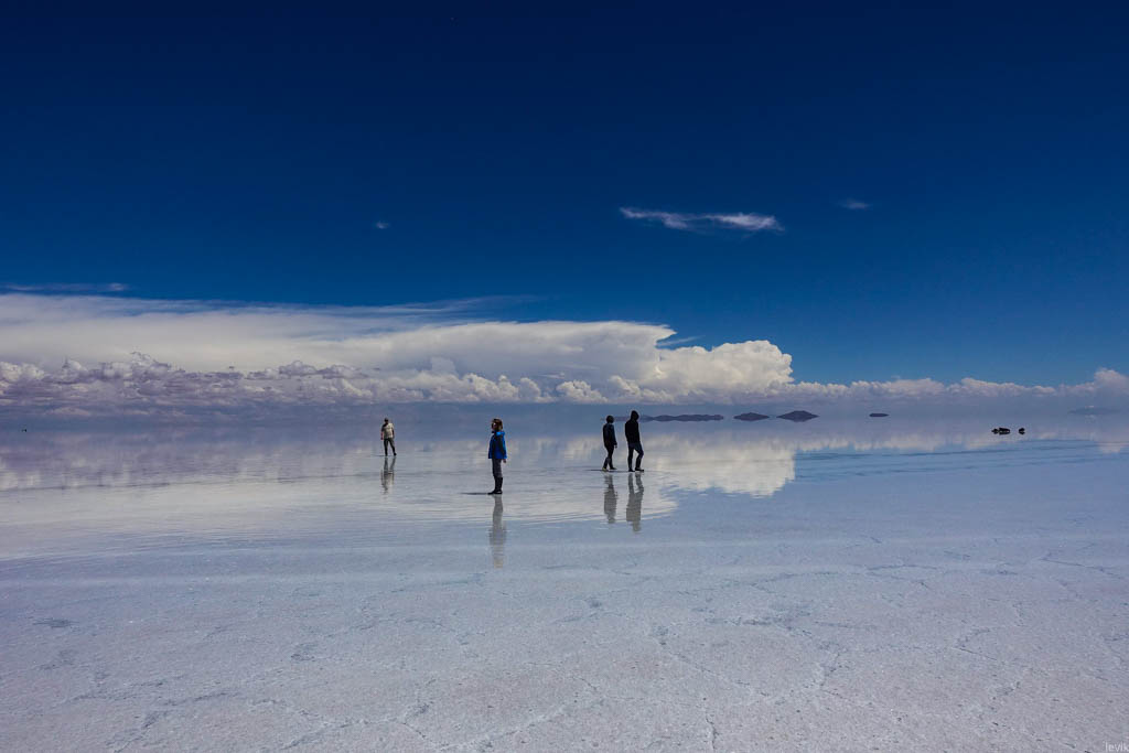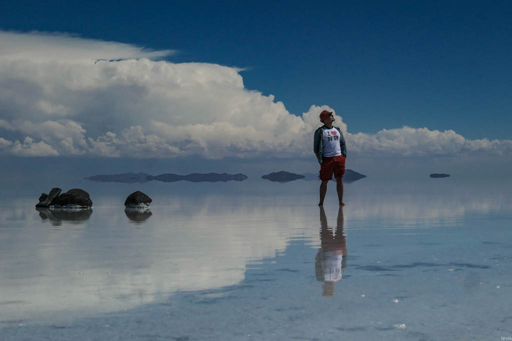Солончак Уюни был главной целью моей поездки в Боливию. Это место давно уже попало в мой список "куда Лёва хочет съездить", и оставалось в нём чуть ли не последним пунктом. Я видел очень разные фотографии этих мест, и всё никак не мог определиться, когда же лучше ехать, в сухое или мокрое время года. Но в итоге мне повезло, и подвернулась возможность поехать именно сейчас, в начале года, чтобы застать солончак в уникальном состоянии, когда он является огромным зеркалом на десять тысяч квадратных километров.