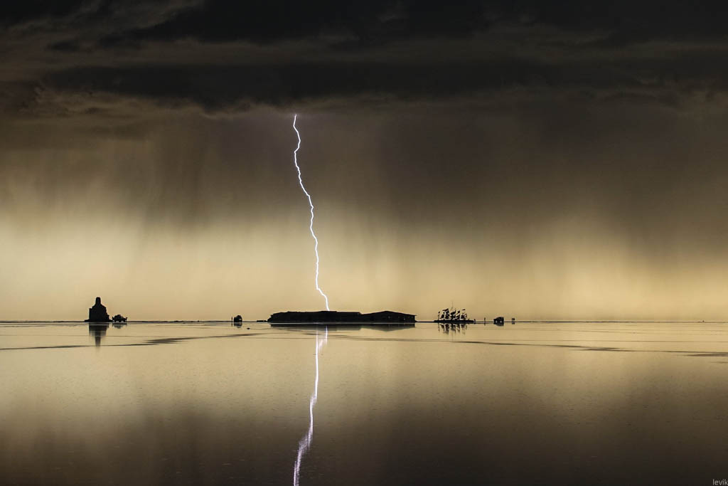39. И тут над соляным отелем начали одна за другой сверкать молнии. Они появлялись регулярно, каждые секунд 20-30. Не подумайте, что мне это так повезло снять с первого раза - нет, это просто молний было так много, что после многочисленных попыток мне немного повезло.