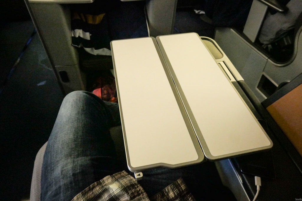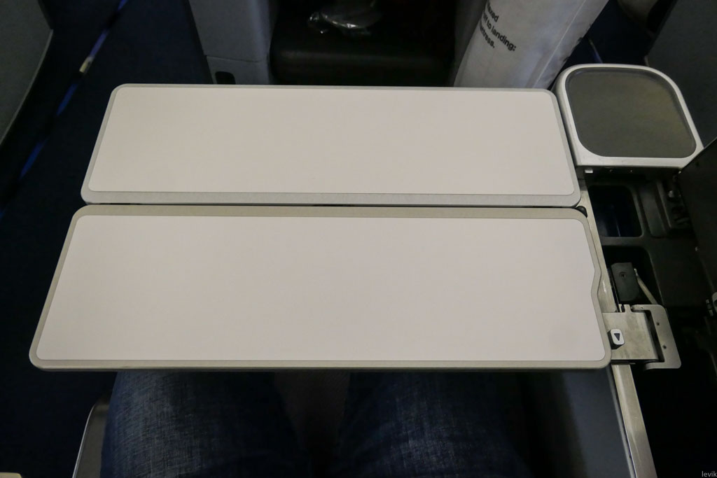 13. Столик вытаскивается из подлокотника, на очень тугой пружине. Сначала подумал, что мой сломан, но оказалось, что это дизайн такой. Надо очень сильно на него нажать, чтоб он выехал. На обоих рейсах так было.