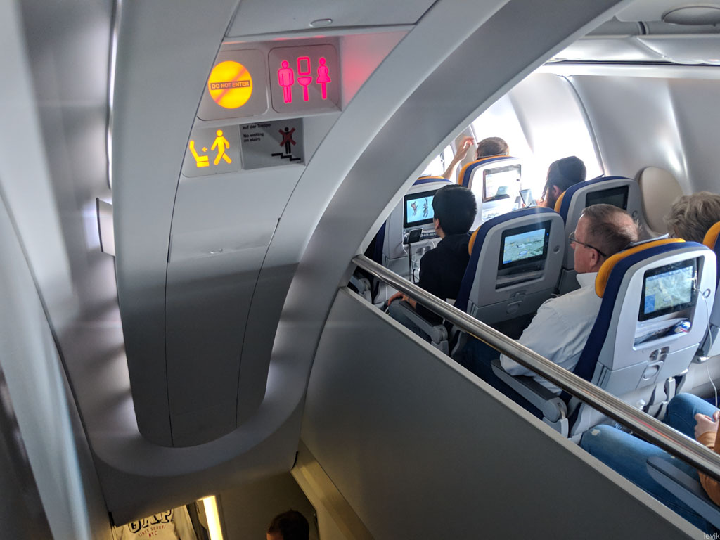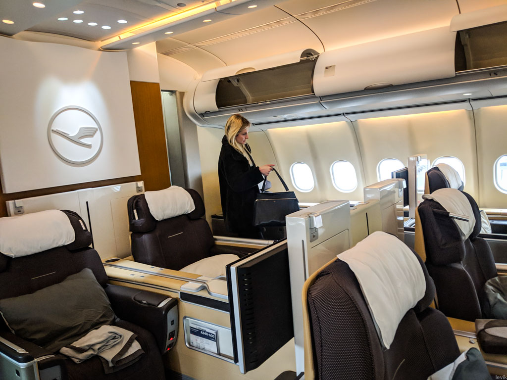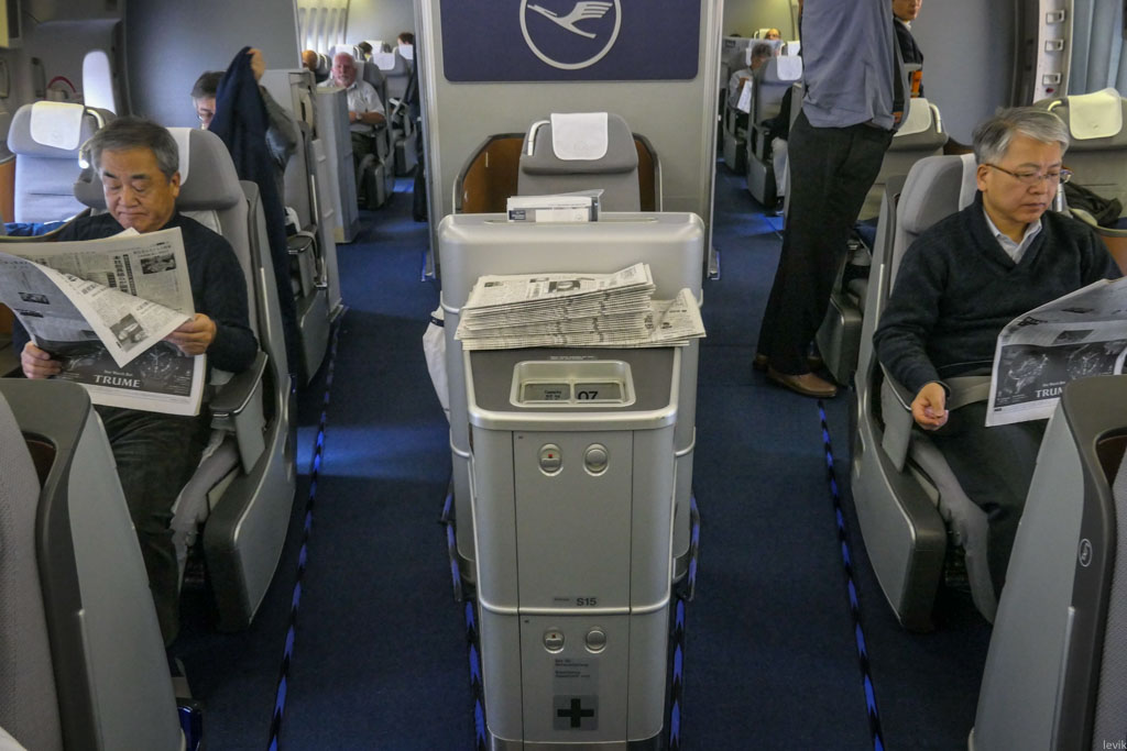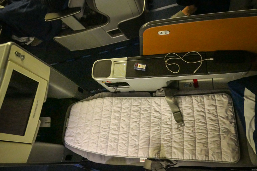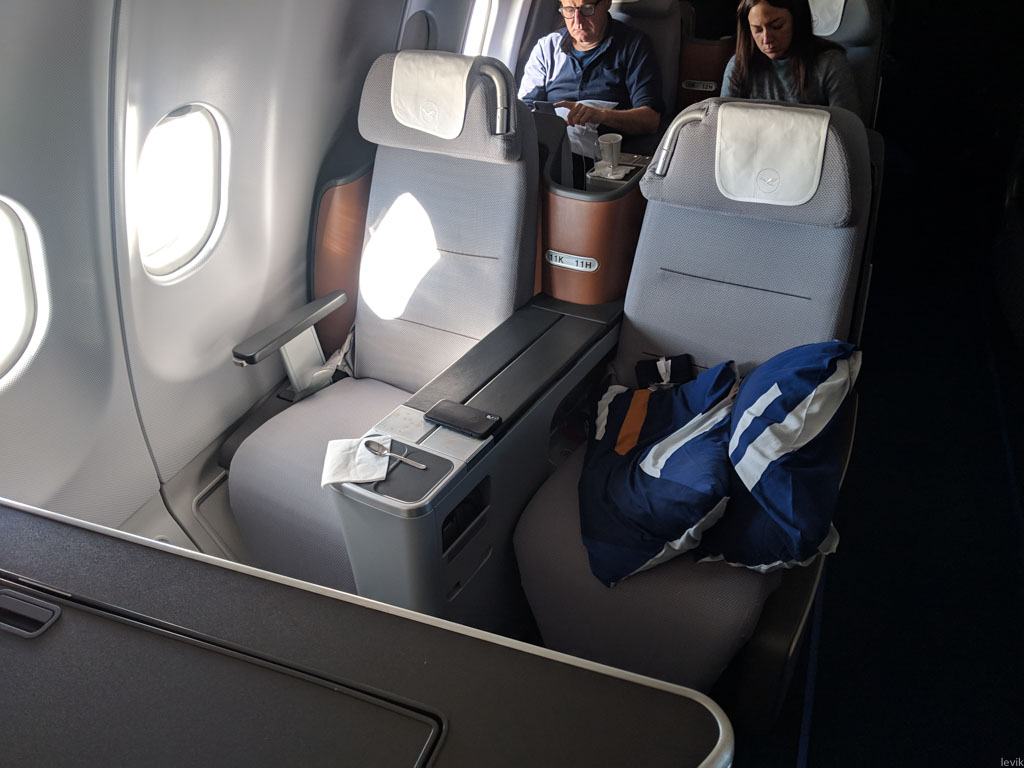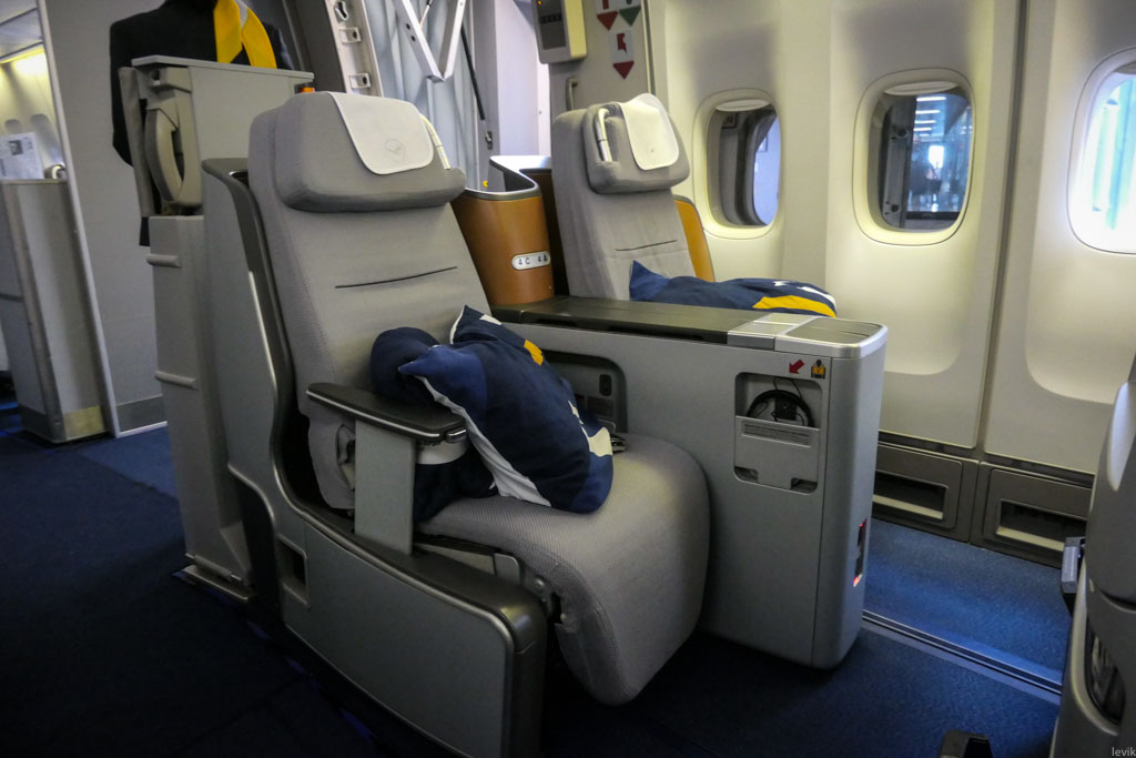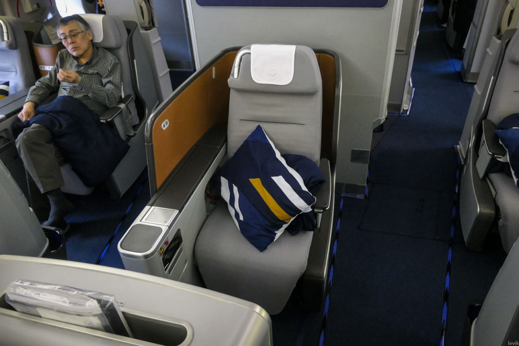 Все знают, что лучше всего на рейсе когда у тебя нет соседей. У меня существуют целый ряд стратегий для того, как выбирать сидения в эконом классе, чтоб увеличить шанс пустого кресла рядом. Так вот, насколько я знаю, в широкофюзеляжных самолётах Люфтганзы бизнес-класс почти всегда с соседом...