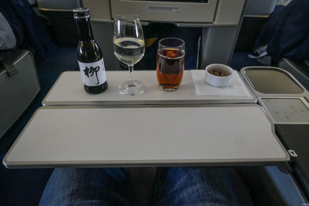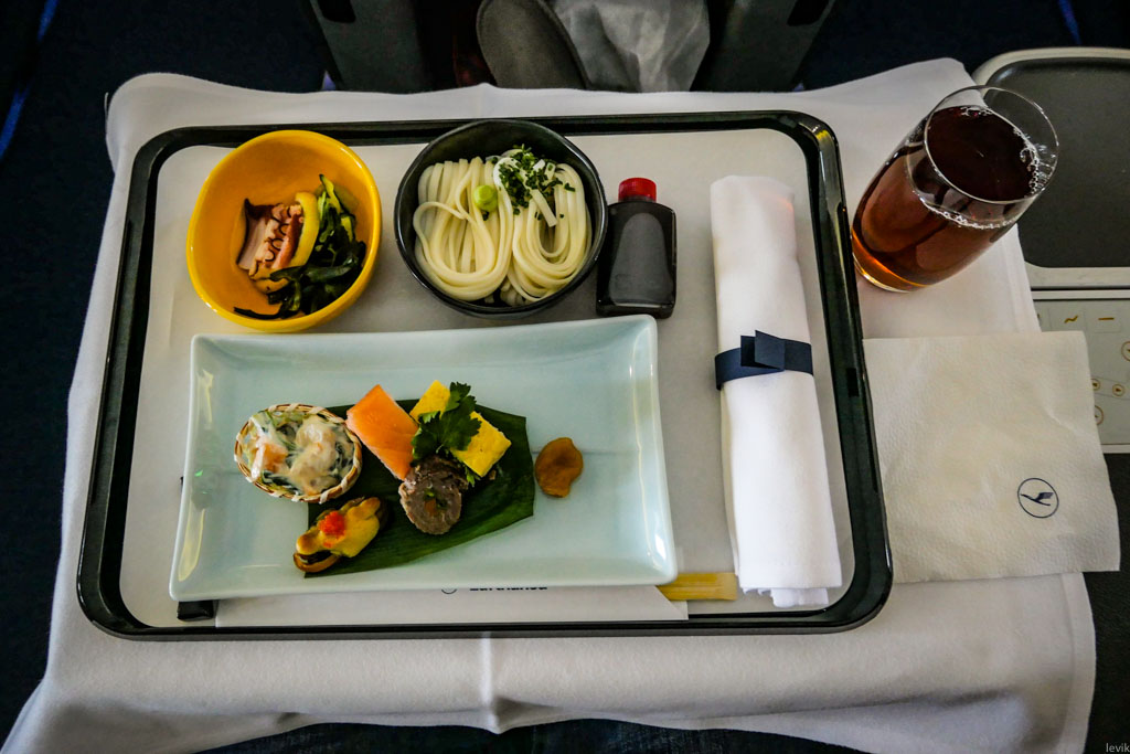 40. Ну, а нас тем временем начали угощать. Люблю рейсы в Японию, потому что даже западные авиалинии на них предлагают японские лакомства. Я начал с холодного саке. Тут сюрприз, у Люфтганзы оказывается есть Дзюммай Дайгиндзё!