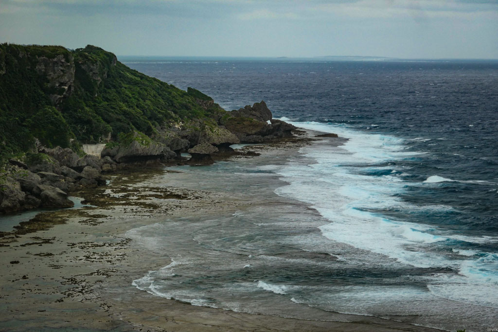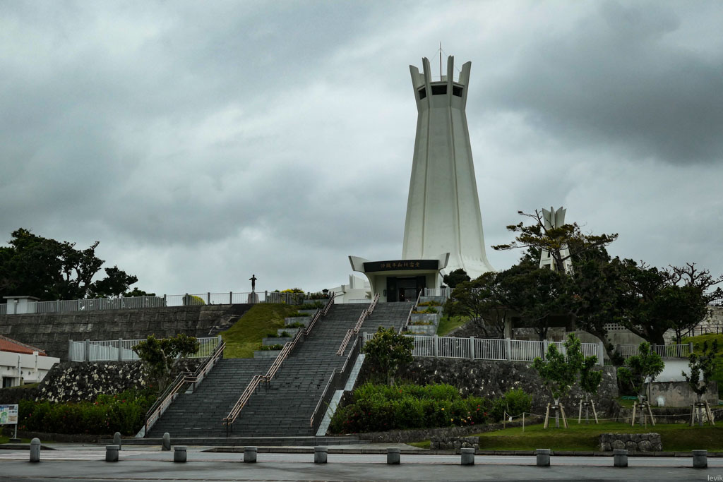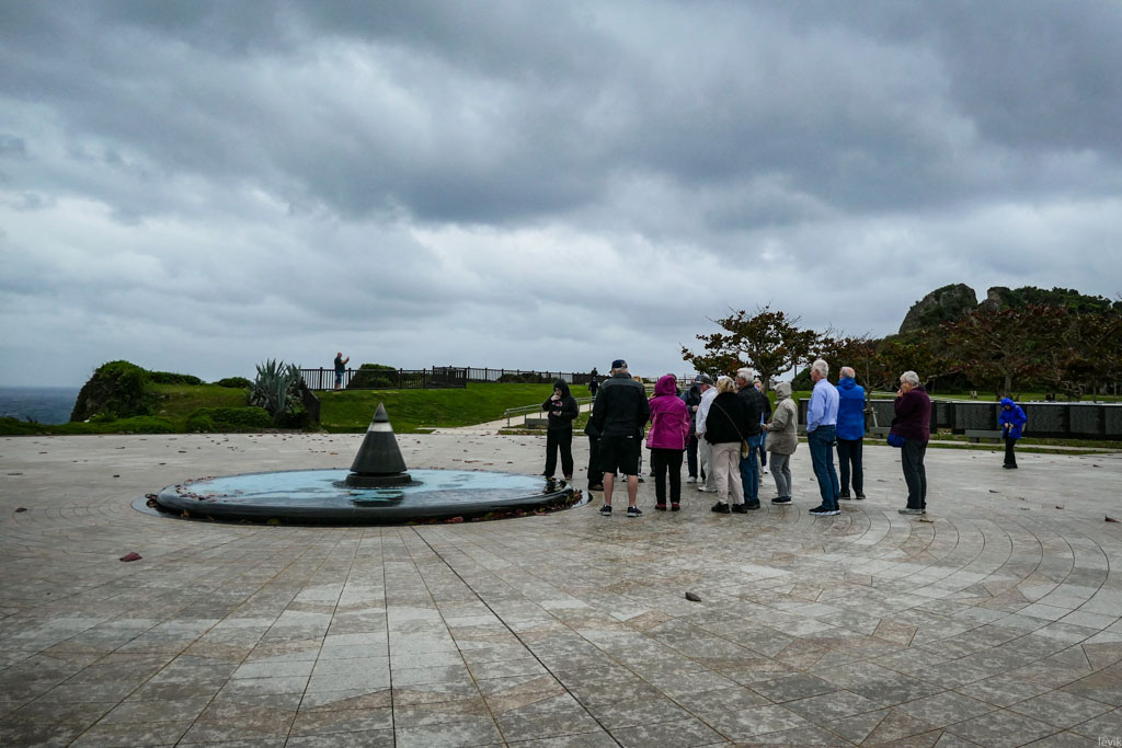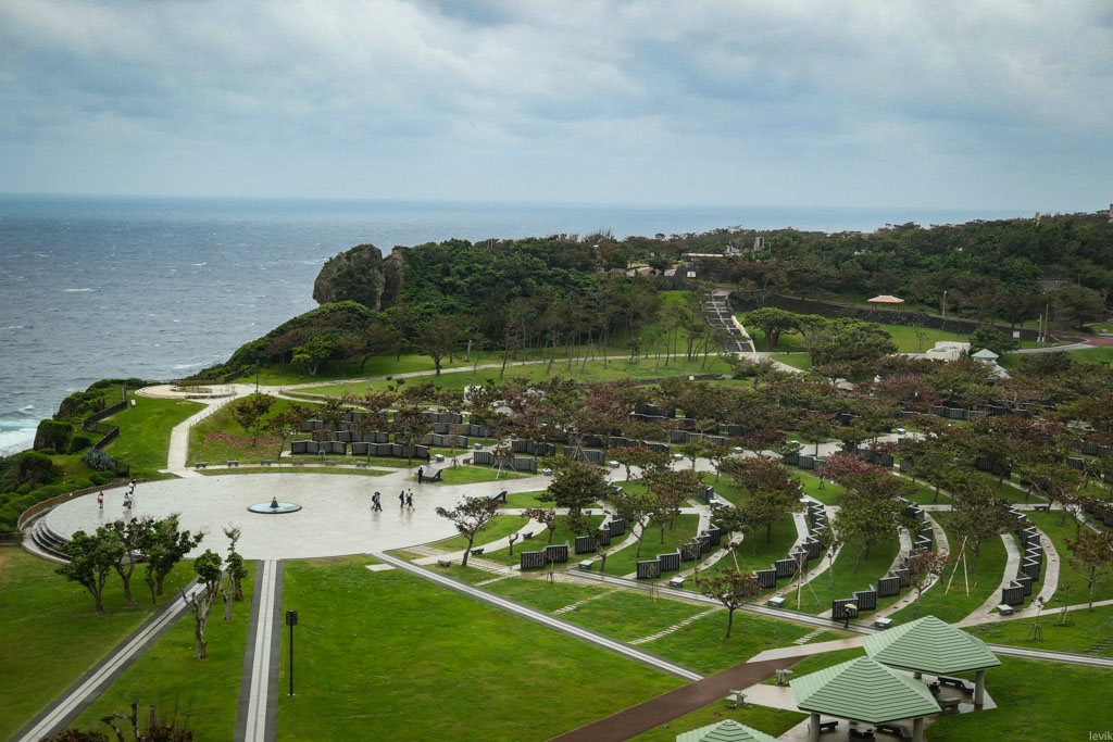 1. Комплекс Парка Мира находится на самом берегу моря, на южном краю Окинавы. Здесь высокие утёсы поднимаются над пляжем. Я приехал в пасмурный день, то и дело накрапывал дождик, дул сильный ветер, и вообще, погода подходила для посещения такого памятного места.