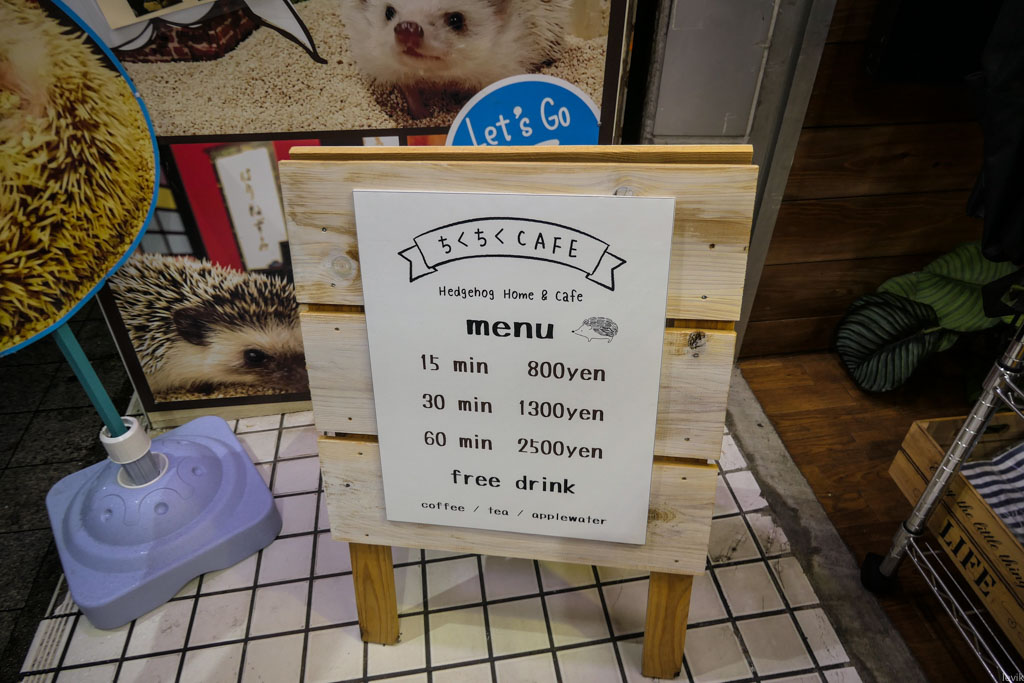 3. Кафе оказалось недешёвым - 800 иен за 15 минут это довольно дорого. Забегая вперёд, скажу, что кафе ко всему оказалось не кафе (никакого кофе мне так никто и не предложил). Но раз уж я решил постмотреть на ёжиков, то 800 иен это не так страшно.