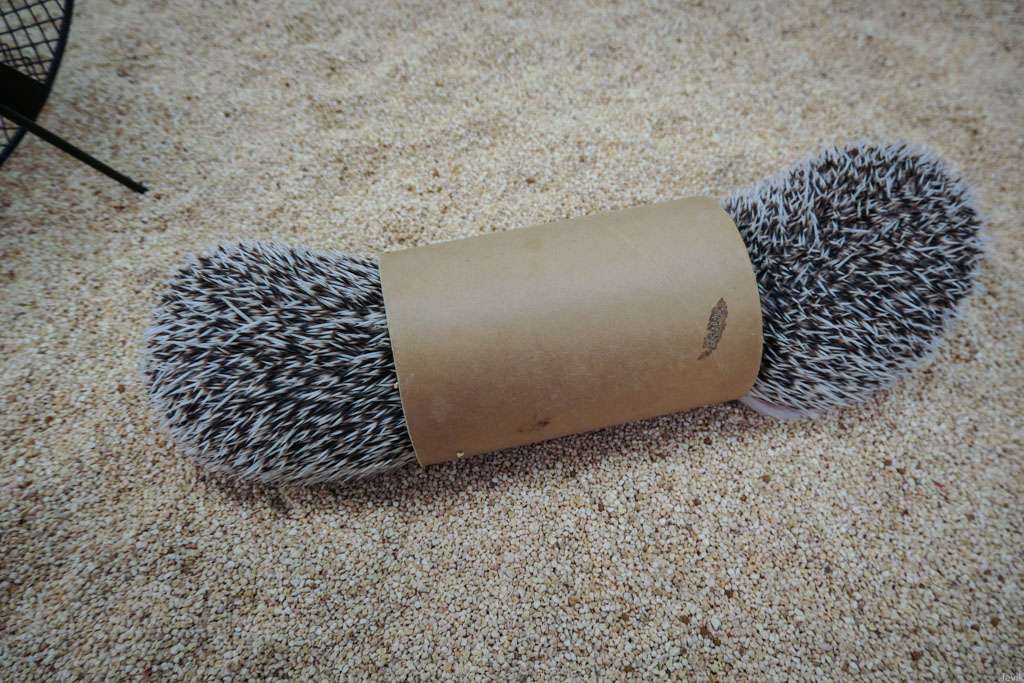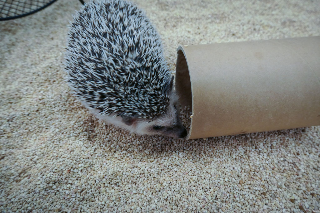 23. Но самая любимая штука для прятанья - это картонная трубка. Как остаток от рулона туалетной бумаги, но чуть потолще. Рано или поздно, ёжики прятались именно в неё.