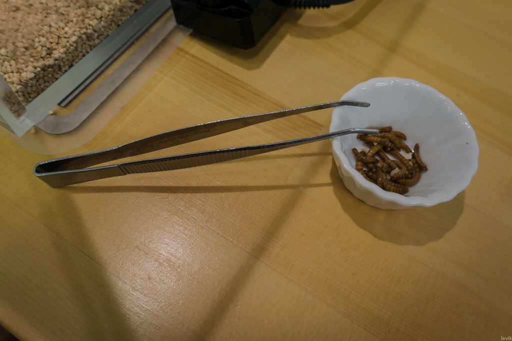 18. За дополнительные 400 иен мне продали ежиное лакомство. Вот такую тарелочку червей. К ним прилагался пинцет, чтоб кормить зверушек.