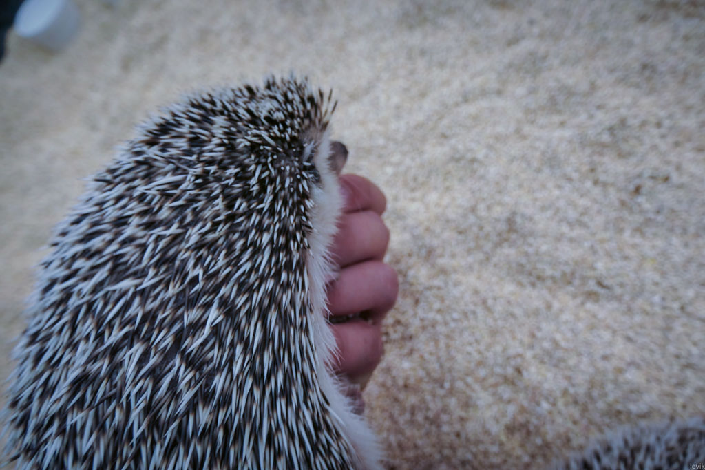 16. Работница кафе выдала мне пару рукавиц, и попросила надеть их, если я буду брать ёжиков на руки. Я так понял, что это необязательное условие, если у тебя на руках нет каких-то повреждений.