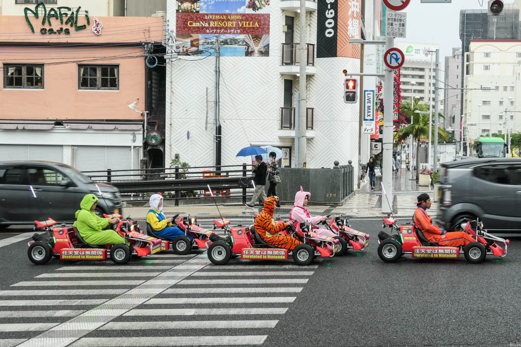1. В Нахе, столице Окинавы, по улицам гоняют люди в маленьких машинках, и костюмах персонажей из мультфильмов и видеоигр.