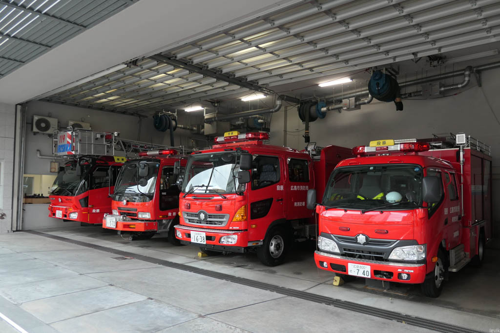 14. Просто красивые пожарные машинки в Хиросиме. Кстати, это очень приятный город, тут много где погулять кроме знаменитого атомного мемориала. Есть даже классический замок (разумеется, новодел).