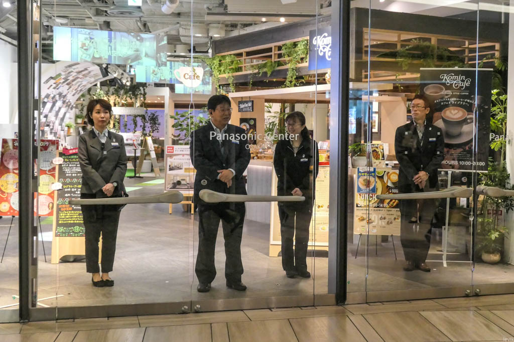 Ровно в 10:00 все четверо сделали шаг вперёд, и синхронно раскрыли двери. Это было похоже на действие хорошо отлаженной машины. Вот она, японская пунктуальность! (Это вдобавок к их деликатности.)