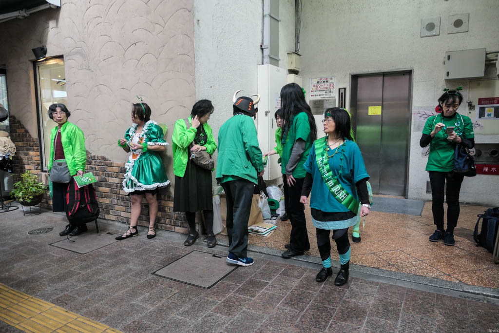 18. Шёл я по Фукуоке в последний день перед тем, как улететь в Гонконг, вдруг смотрю, куча народу в зелёных нарядах. Оказывается, это местные японцы празднуют день Святого Патрика!