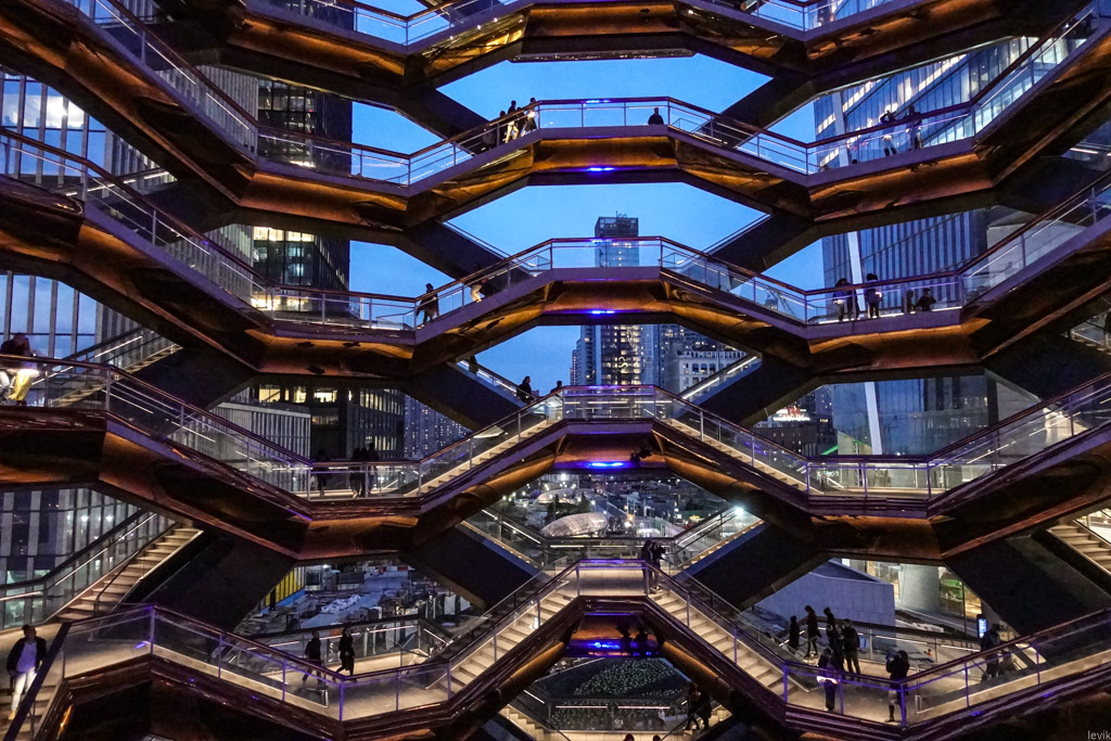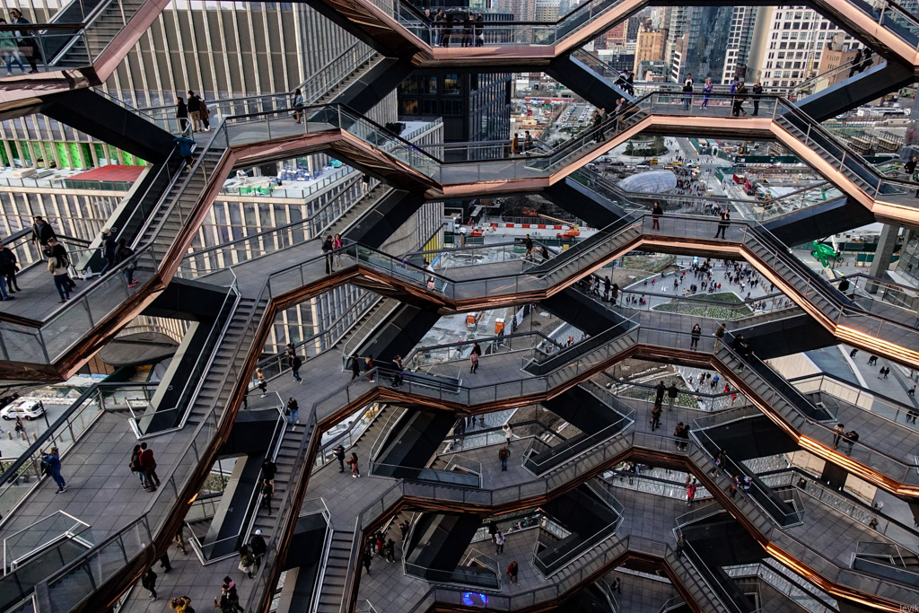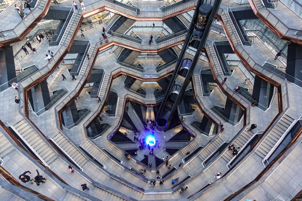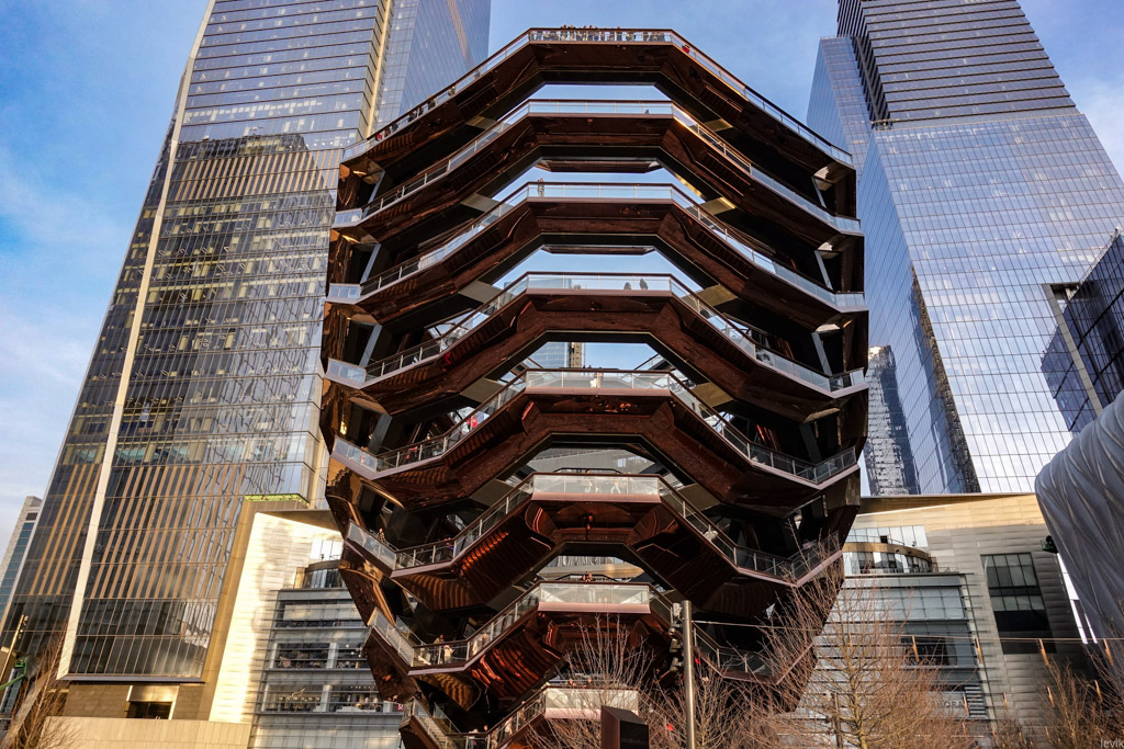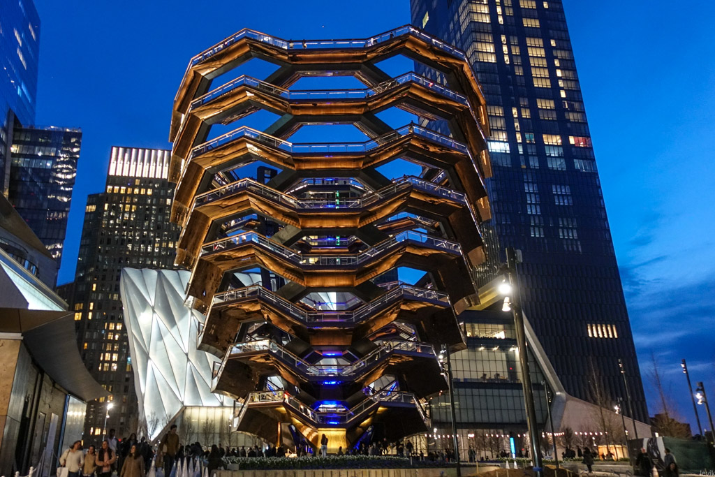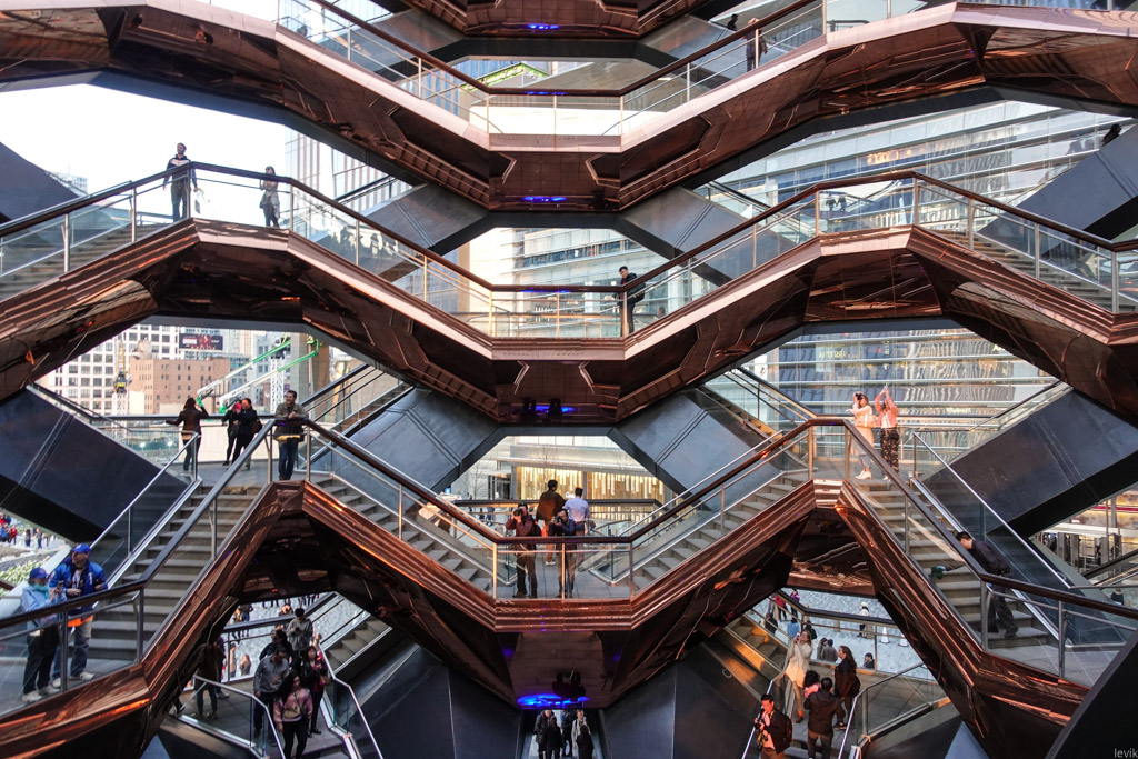 7. А пока, давайте всё же обратим наше внимание на Vessel. Вот он, во всей красе. С виду это восьмиэтажная (а на самом деле - тут 16 этажей!) структура сооружённая из множества лестниц. Она поднимается на 46 метров над землёй, и служит своего рода огромной смотровой площадкой. Своим названием скульптура обязана своей форме ("Vessеl" в переводе с английского значит "ёмкость" или "чаша").