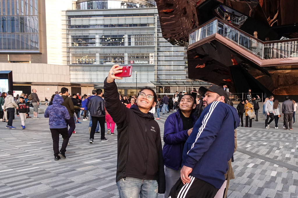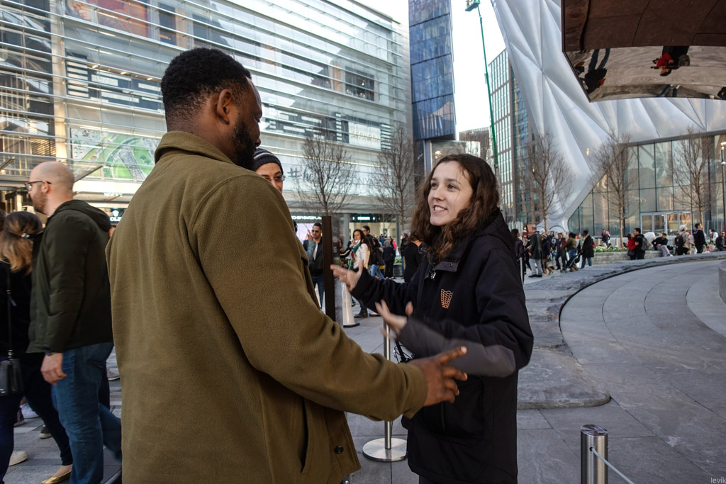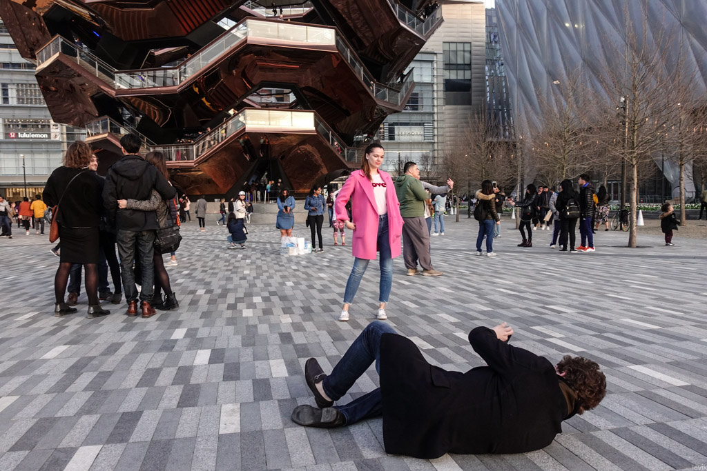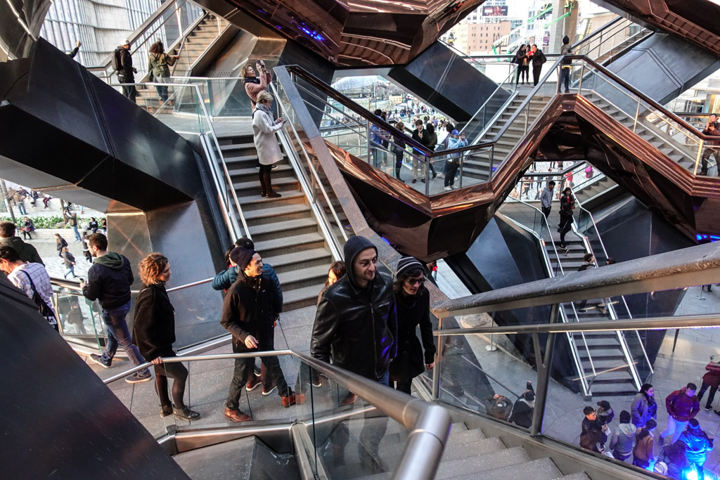 17. Главное, что мне не понравилось в Весселе, это как нелегко на него попасть. Из-за своего недавнего открытия скульптура пользуется дикой популярностью, и на неё нельзя просто так забраться. Нужны билеты, которые можно заказать заранее, или получить в тот же день. Они бесплатные, но их количество ограничено, а спрос на них велик. То есть просто так прийти и подняться на Vessel не выйдет. Вокруг скульптуры дежурят приветливые молодые люди, которые объясняют желающим, что вход только по билетов, а билеты на сегодня уже закончились.
