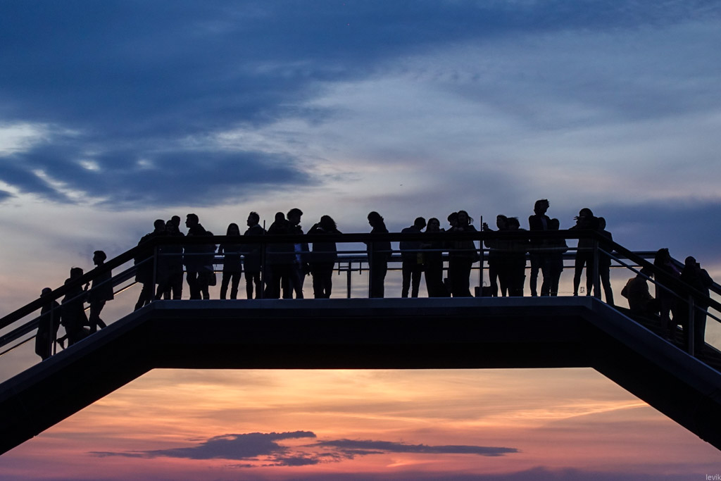 27. На каждой лестничной площадке собирается группка посетителей. Вся инсталляция служит одной здоровой смотровой площадкой, с которой удобно глазеть на окрестности.