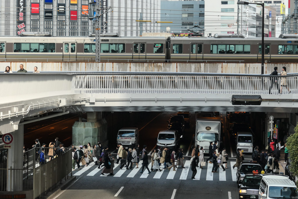 2. А всё дело в том, что район вокруг станции Осака - самый настоящий город будущего. Не тёмная дистопия "Бегущего по Лезвию", какую построили в Китае, а светлый и чистый город, просто он существует не в одной плоскости, а в трёх измерениях.