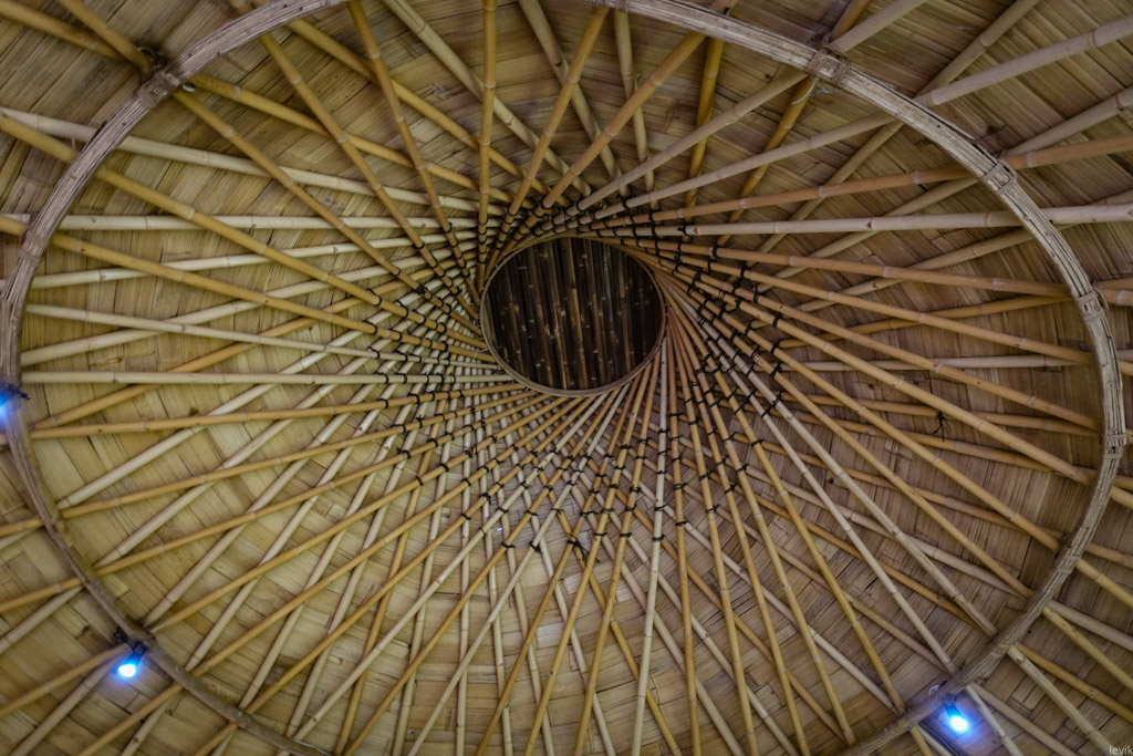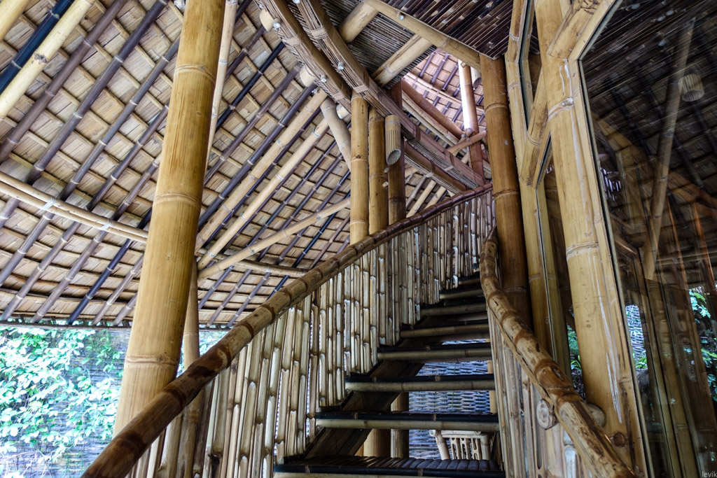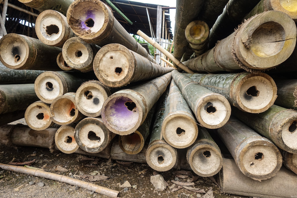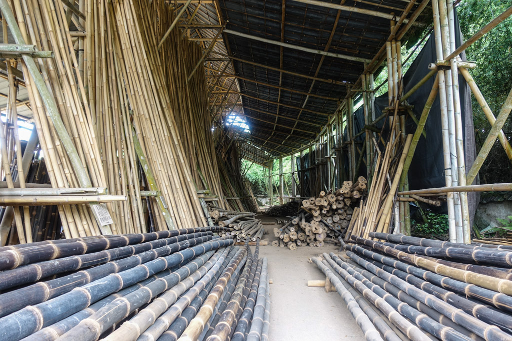 Здесь нам показали великолепные бамбуковые виллы, затерянные в густых джунглях, и рассказали о том, как работает местное бамбуковое производство. Я почему-то всегда наивно думал, что строить из бамбука проще простого - срезал ствол, и вот тебе готовое бревно. Оказалось, всё намного сложнее!