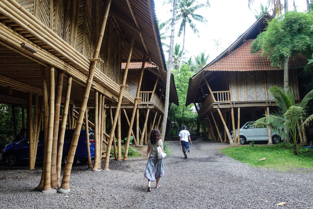 После моих рассказов о том, какие на Бали грязные пляжи, сумасшедшие пробки, и жулики-таксисты, многим показалось, что мне совсем не понравилось время проведённое на острове. Но это вовсе не так. Просто, о минусах иногда намного проще рассказывать, чем о плюсах. Сегодня я хочу это исправить, и показать вам удивительную бамбуковую деревню, недалеко от Убуда.