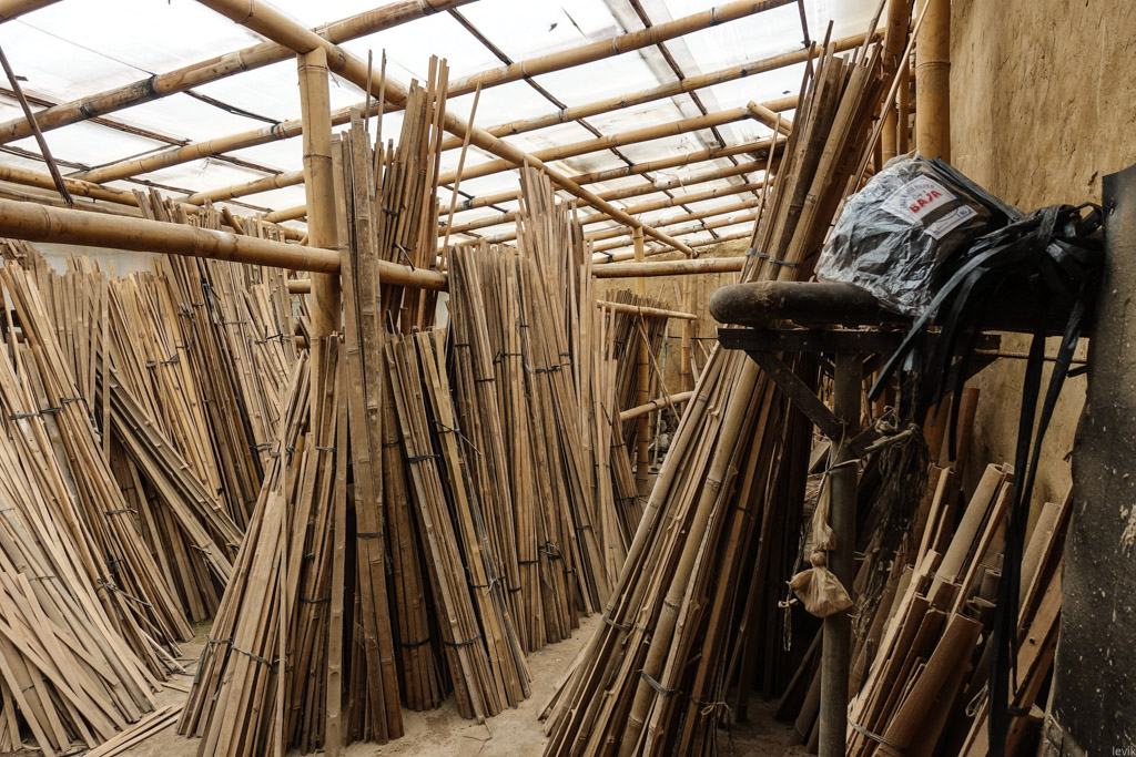 10. Первым делом бамбуковые стволы сохнут на огромном хранилище. Этот процесс занимает несколько недель, и за это время бамбук теряет свой ярко-зелёный цвет.