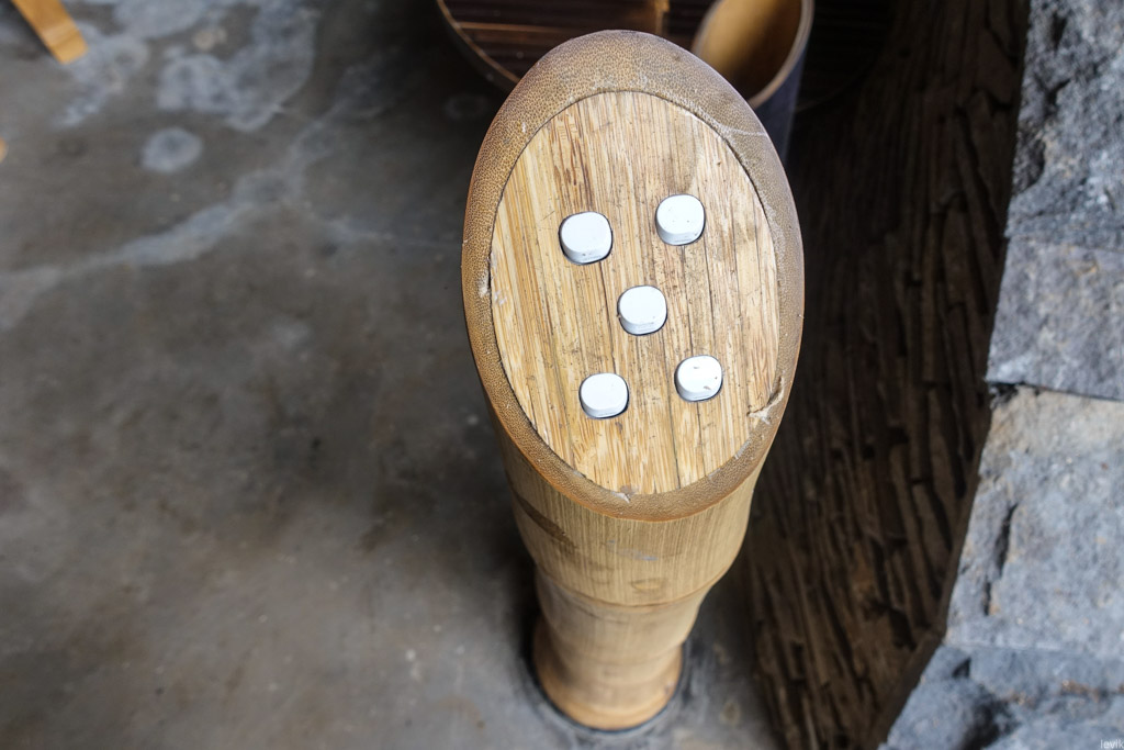 35. Разные мелочи интерьера тоже сделаны из бамбука. Например в эту стойку вмонтированы выключатели света.