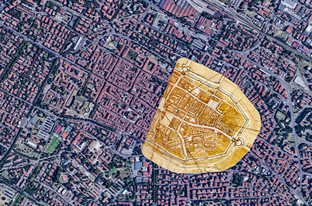Половину тысячелетия у нас не было возможности оценить точность этой работы, но с появлением спутниковых карт, мы можем наконец наложить одну на другую, и увидеть, насколько точно Леонардо да Винчи смог изобразить очертания Имолы сверху: