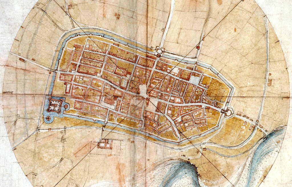 В 1502 году Леонардо да Винчи поступил на службу к Чезаре Борджиа, военачальнику и политическому деятелю, чья жажда власти послужила вдохновением книги "Государь" Никколо Макиавелли. Да Винчи был уже в возрасте - ему было 50 лет, и успел широко прославиться как художник и изобретатель. Но у Борджиа для Леонардо была немного иная задача: ему нужно было нарисовать карту Имолы - небольшого города, который недавно захватили его войска. Деятель хотел получить наглядное представление новой для себя местности.