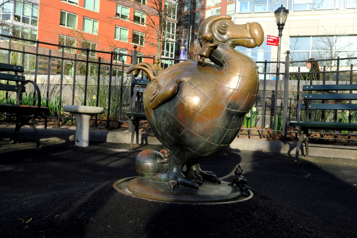Заметьте какой светлый клюв у Додо! Одна из вещей, за которые Оттернесс любит работать с бронзой - то что она полируется почти до золотого блеска, если её постоянно трогать. Таким образом сразу видно, какие из частей его работ самые популярные.
