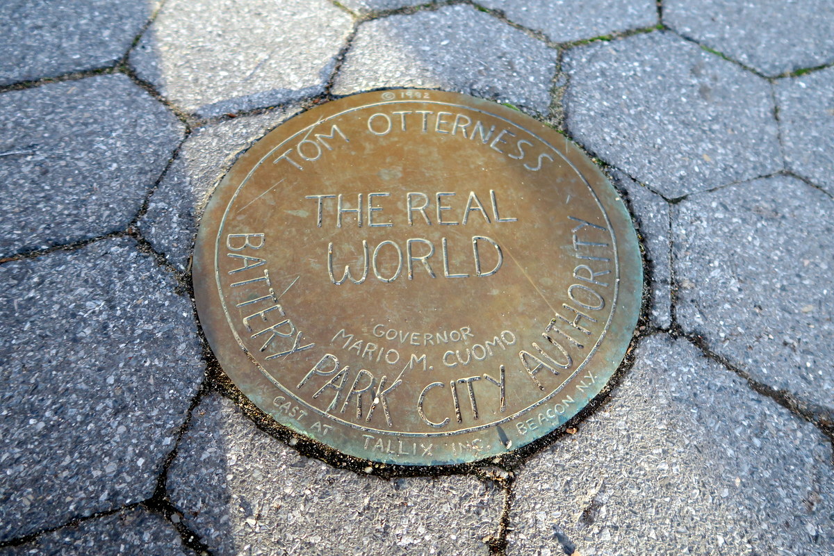 16. Но вернёмся к работам Тома Оттернесса. Самый крутой по-моему его проект тоже находится в Нью Йорке. На западном берегу нижнего Манхэттена находится Рокфеллер Парк, где в 1992 году скульптор сделал масштабную серию работ под названием The Real World (Реальный Мир).