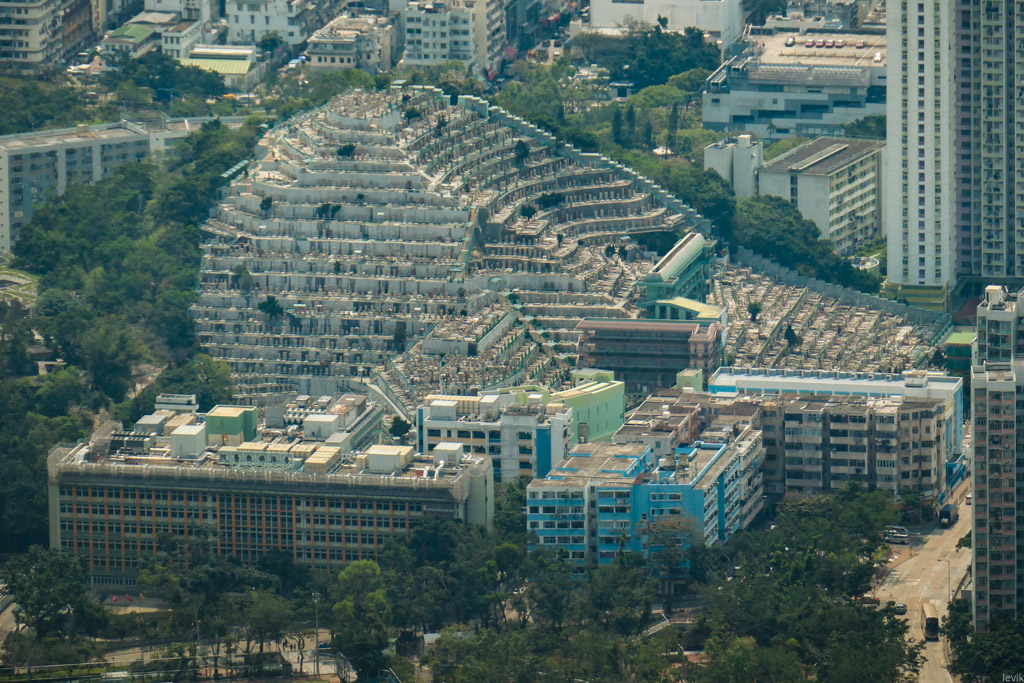 38. Сначала подумал, что это какой-то очень модный небоскрёб в виде ступенчатой пирамиды. Потом пригляделся, и понял, что на самом деле смотрю на китайское кладбище, расположенное на склоне холма.