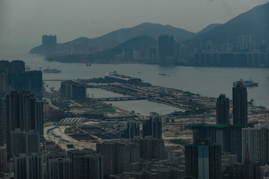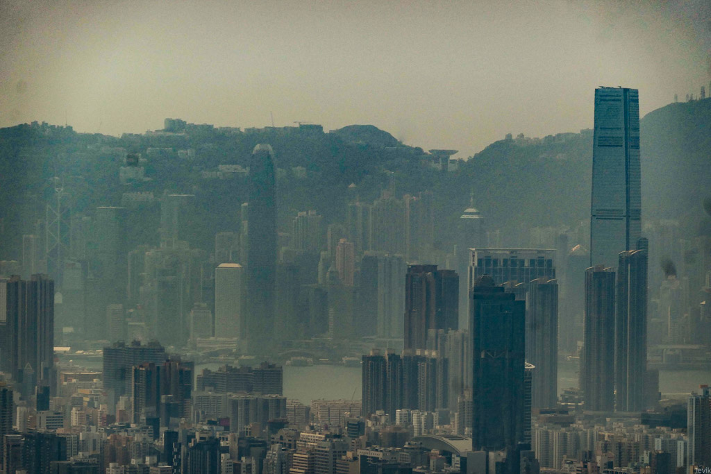 35. Воспользовался возможностями своей супер-зум-мыльницы, а потом ещё и в Лайтруме изрядно покрутил рычажки, чтобы получился вот такой кадр. Тут конечно много шума, но видны главные небоскрёбы Гонконга. ICC (поближе, на Коулунской стороне) и IFC (на дальнем берегу Бухты Виктории). А ещё если совсем приглядеться, видна даже сама Peak Tower.