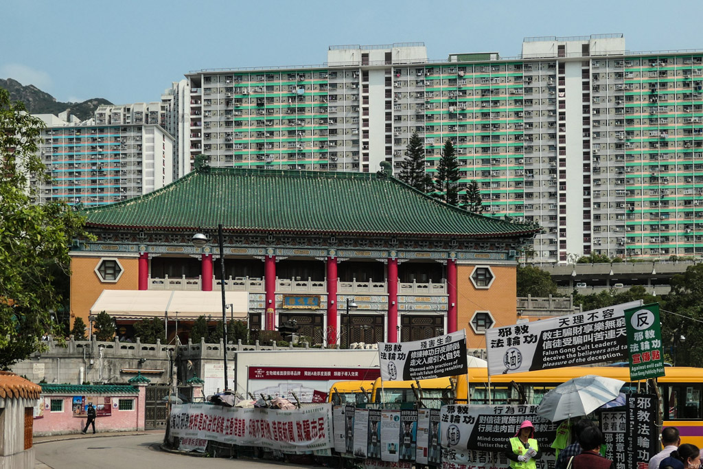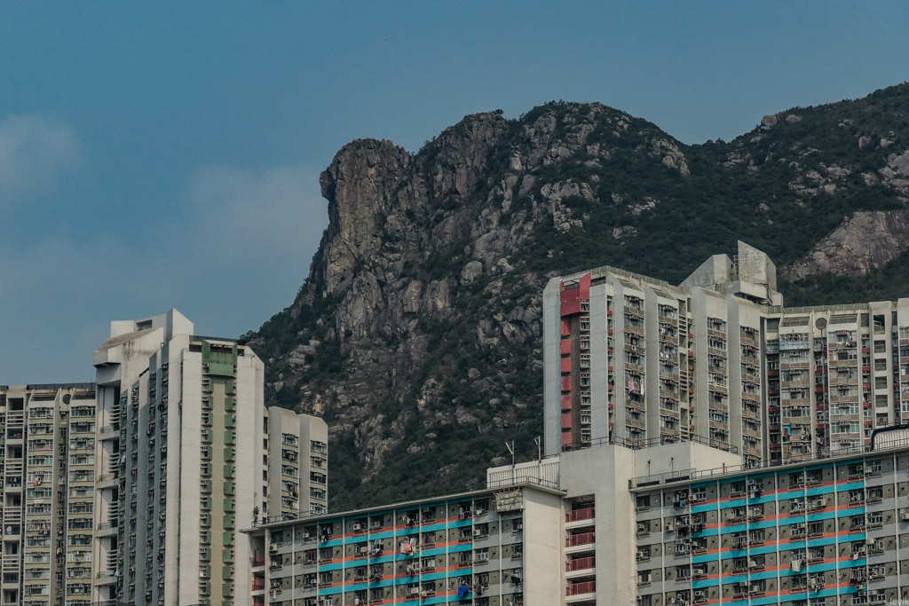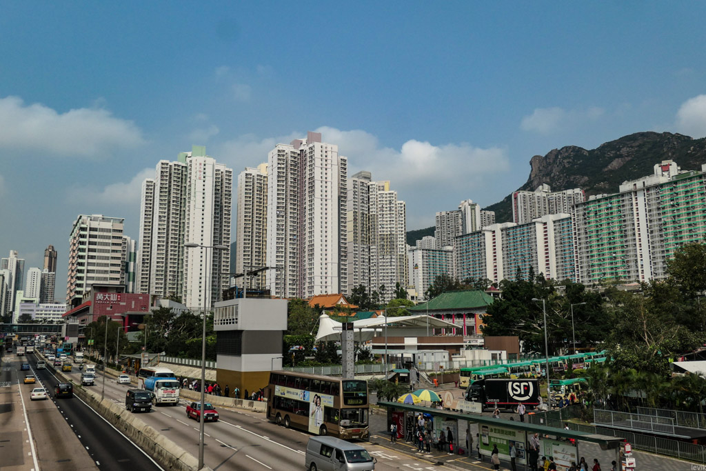 1. Львиная скала находится севернее туристических районов Коулуна, и попасть туда легче всего на метро. Едем до остановки Wong Tai Sin на зелёной ветке. Это где-то полчаса от самого центра Гонконга, с одной кросс-платформенной пересадкой по пути (на станции Monkok). Выхожу из метро, вокруг среднестатистический спальный район. А вдалеке виднеется сама скала.