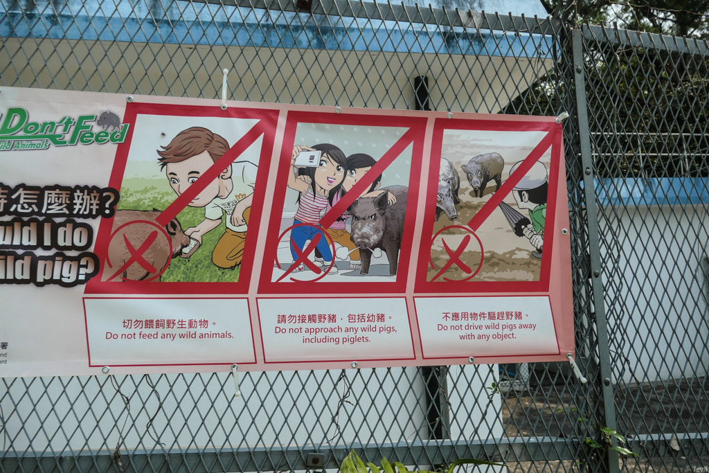 7. Предупредительные знаки у начала тропы. Не кормить диких кабанов! "Ничего себе," подумал я. "Откуда тут кабаны? Практически в центре Гонконга то..."