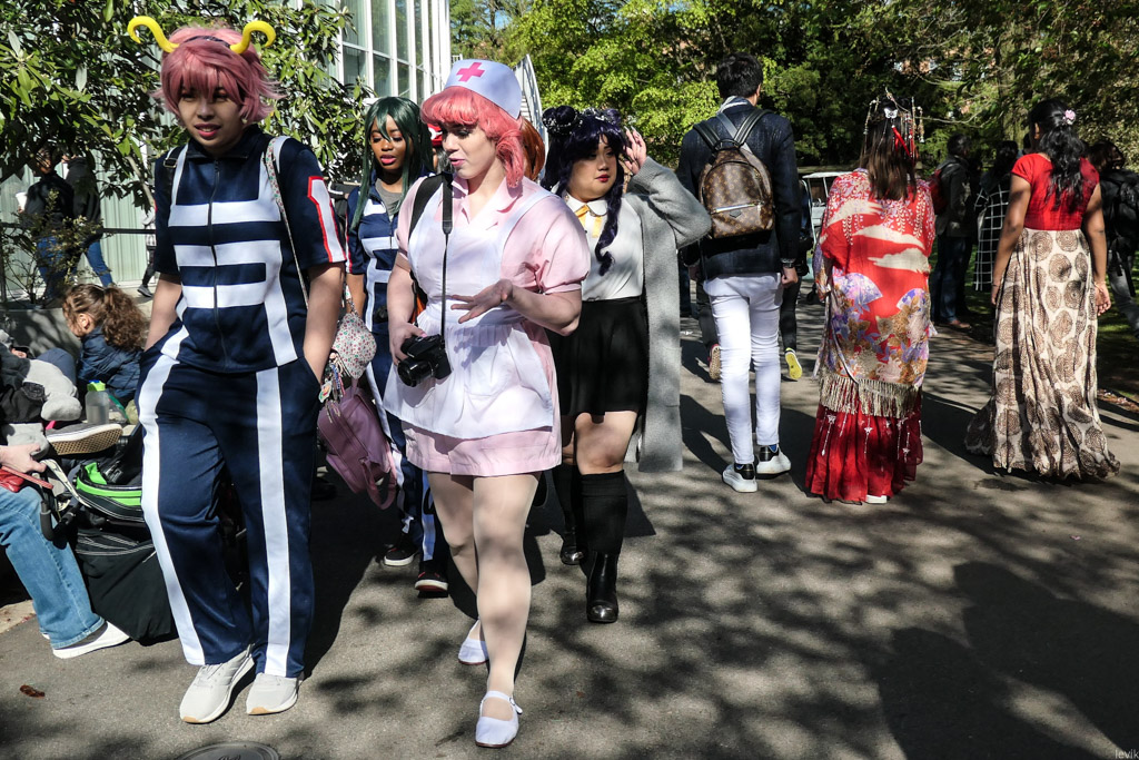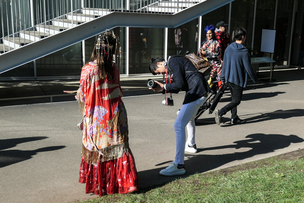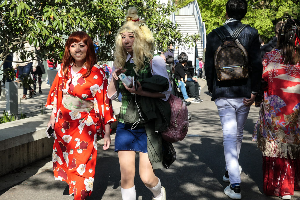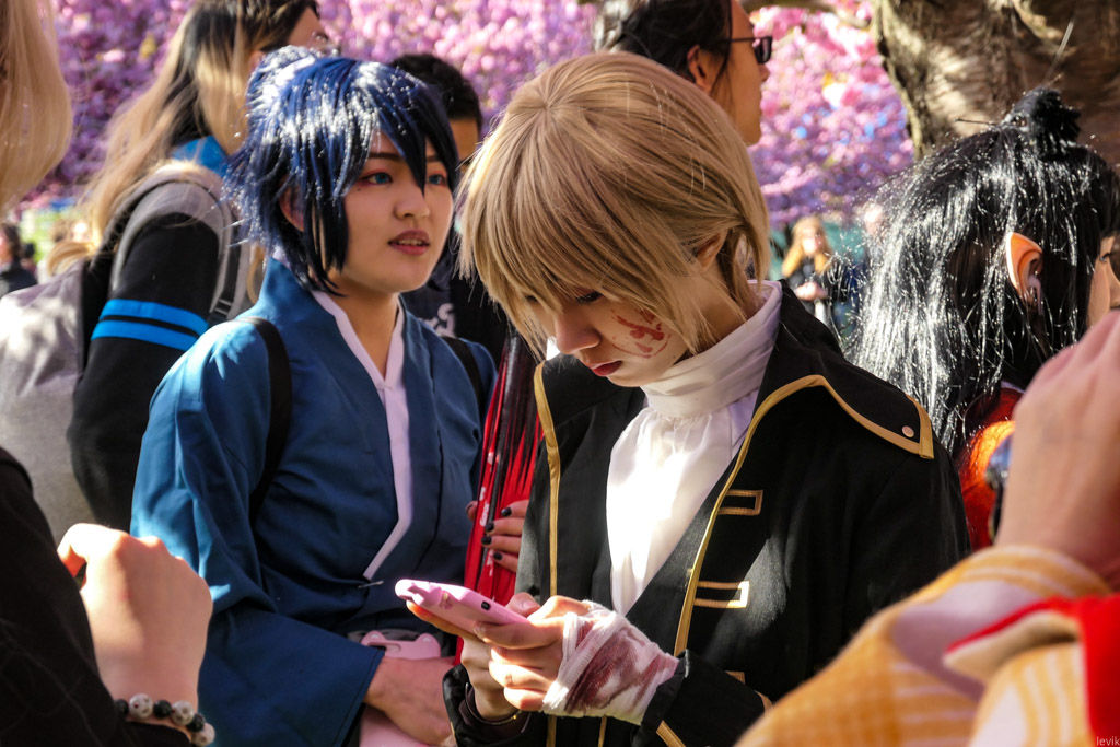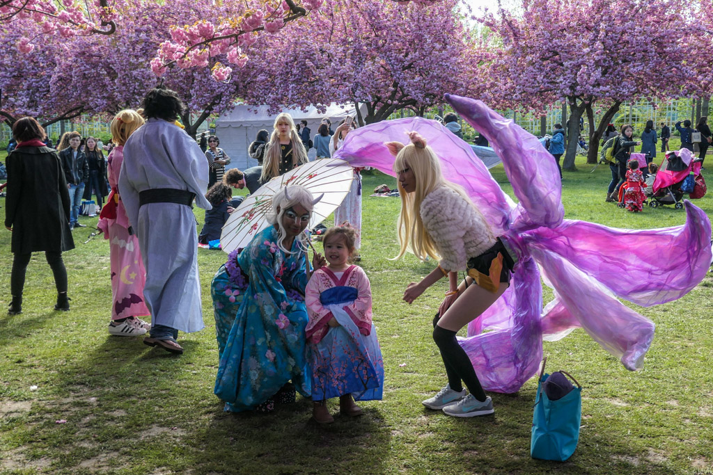 21. Как я уже сказал, посетители фестиваля (особенно девушки) одеваются в яркие праздничные наряды с азиатской тематикой, чтобы фотографироваться на фоне цветения.