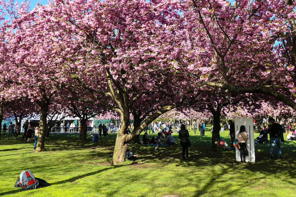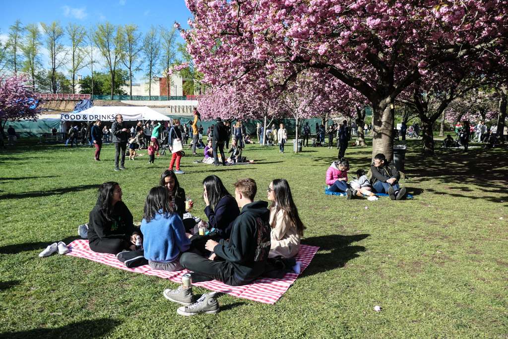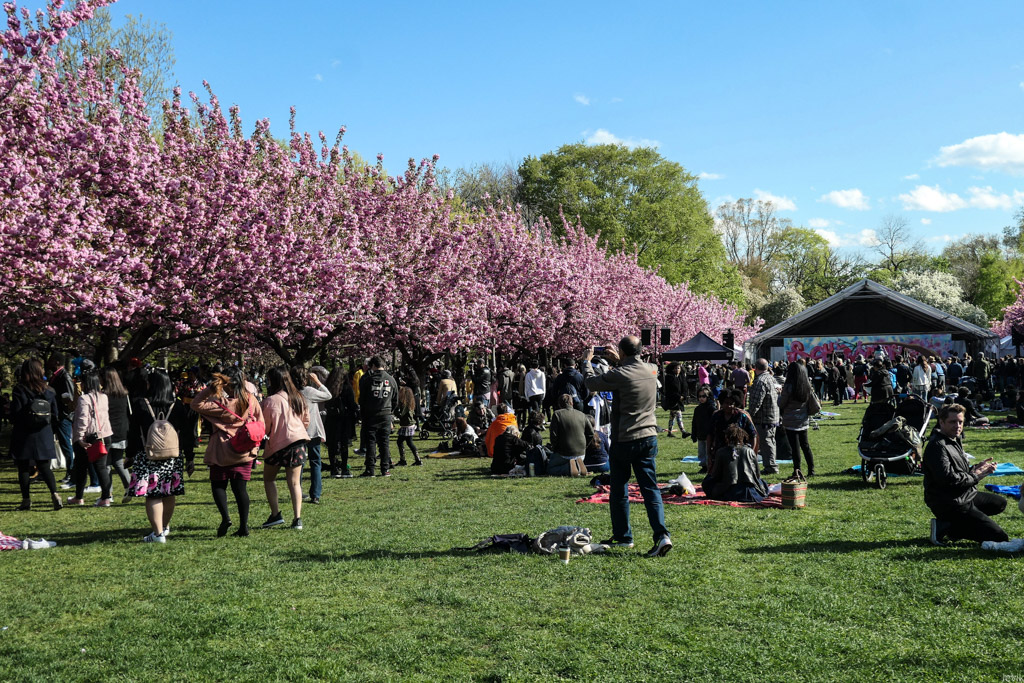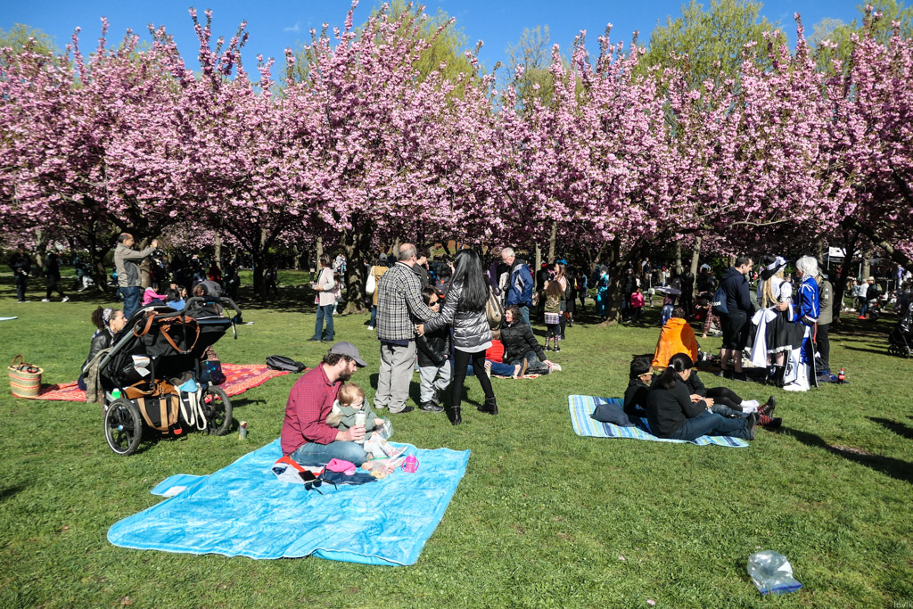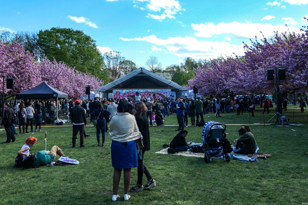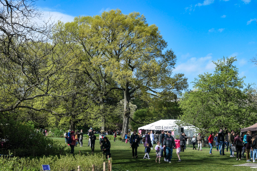 4. А ещё здесь высажено большое количество японской вишни, сакуры, и каждый год администрация сада устраивает фестиваль, приуроченный к её цветению. Так вышло, что в этом году я был в Нью Йорке во время праздника, и решил сходить посмотреть, насколько это похоже на то, что мне доводилось видеть в самой Японии.