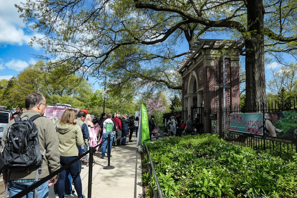 7. Так как в Нью Йорке сакуры не очень много, а желающих посмотреть немало, то спрос довольно велик. Вход в сад по билетам, которые стоят аж $30! И при этом тут всё равно очереди. Нет недостатка в тех, кто готов заплатить такие деньги чтоб посмотреть на прекрасное цветение.