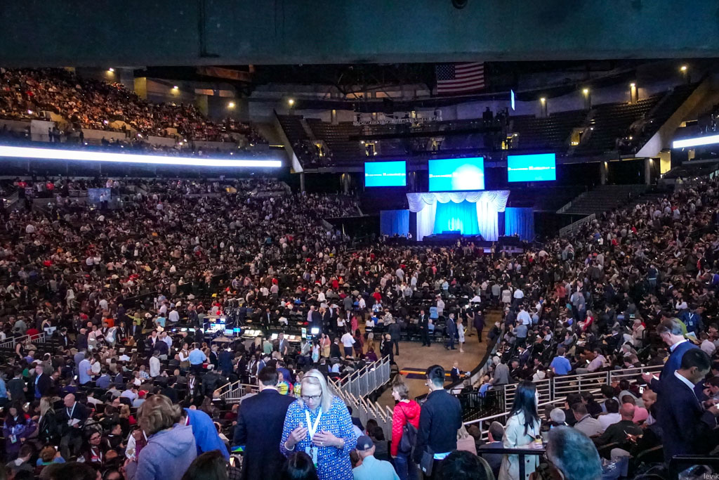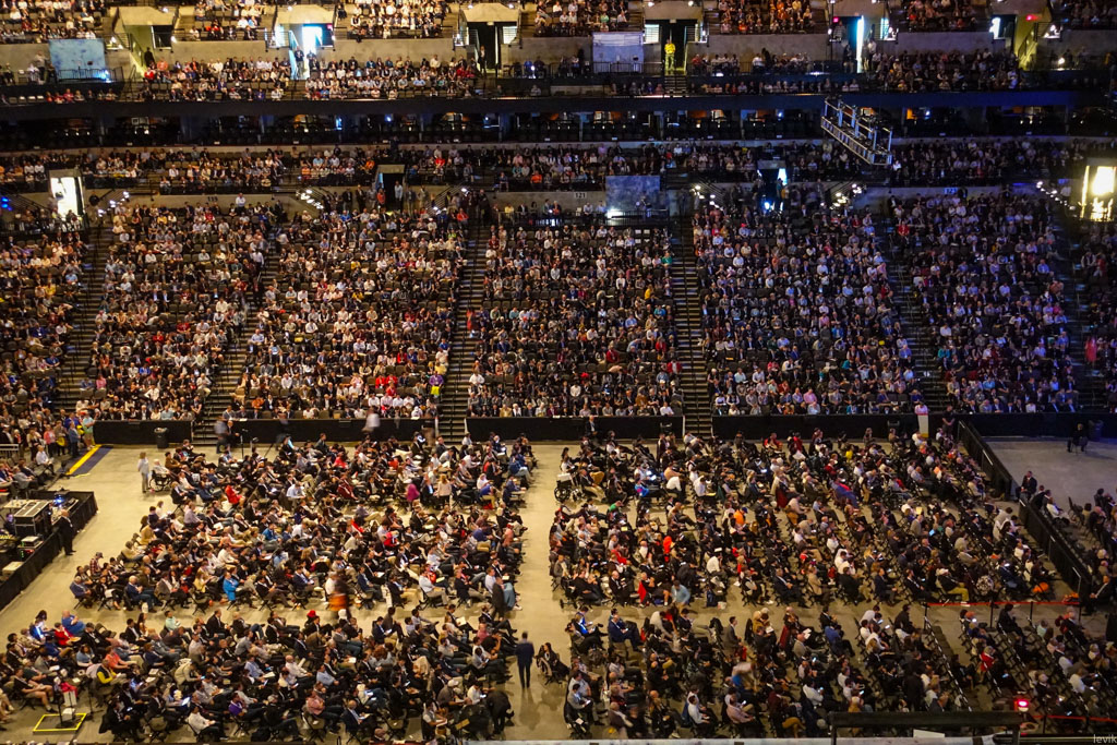 На собрание съезжаются люди со всего мира - из Америки, Европы, Азии... Все они заполняют огромный стадион, который находится в деловом центре Омахи. Двери открывают в семь утра, но уже за много часов до этого народ толпится у входа, в надежде занять хорошие места.