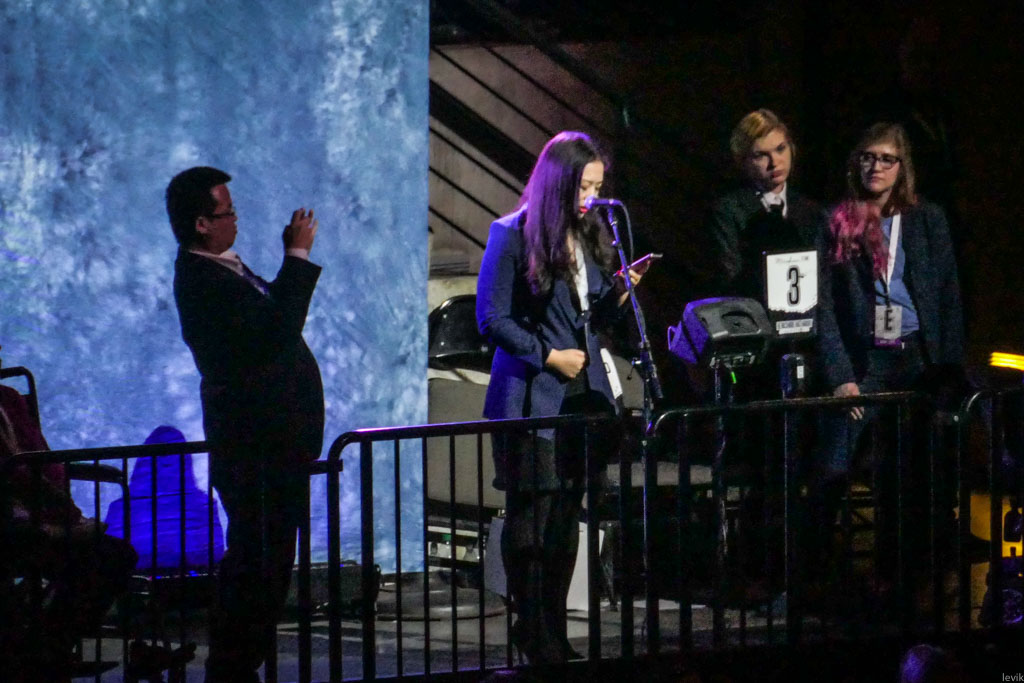 И даже показывают на больших экранах на весь зал. Среди числа победивших было много приезжих из Китая. Люди, спрашивающие вопросы готовятся, у всех текст записан на телефонах, и многие читают с экрана дрожащим от волнения голосом.