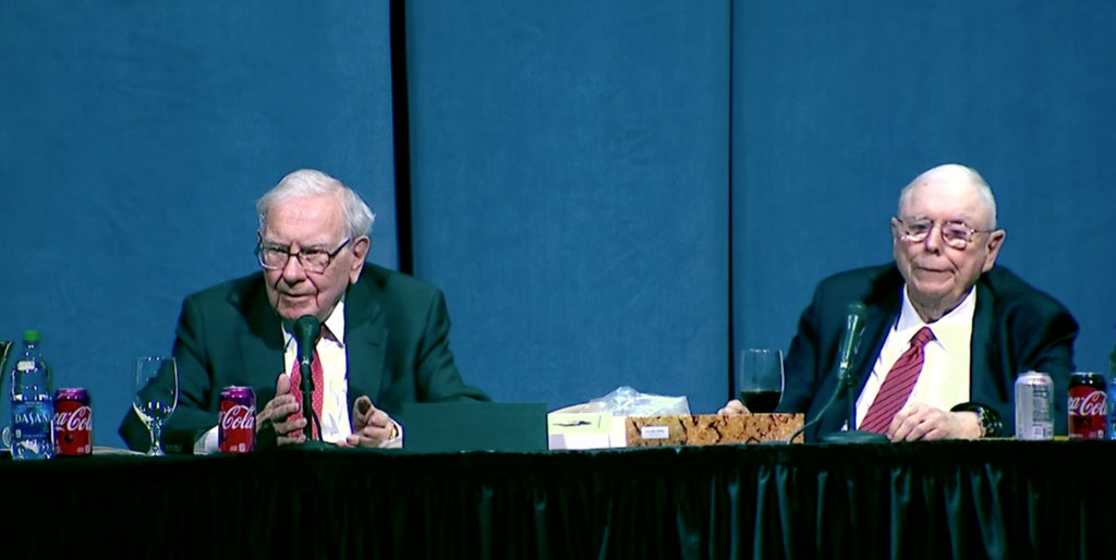 Баффетт называет Мангера своим "молодым заместителем". На самом деле это шутка: самому Баффетту сейчас 88, в то время как Чарли Мангеру "всего" 95! И вот эти два дедушки сидят за столом, и на протяжении шести часов (с одним перерывом) отвечают на вопросы. При этом перед ними на столе стоят бутылки с водой и Кока-Колой, и конфеты.