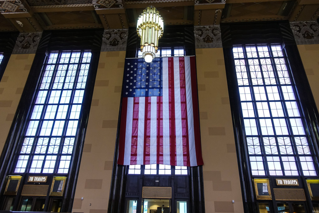 15. Выход из Union Station через роскошный мраморный вестибюль.