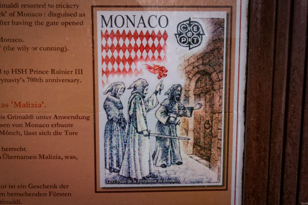 Однако, в память о хитром поступке 700-летней давности, княжеский герб Гримальди включает себя двух мужчин в монашеских рясах, с поднятыми мечами.