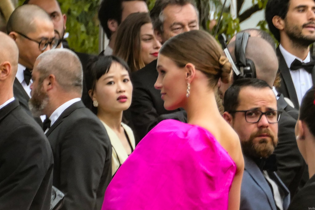 Я испытал это на себе - провёл около получаса прямо через дорогу от главного кинотеатра города, куда как раз стекались сливки общества. И даже многих сфотографировал. К сожалению, я не держу палец на пульсе кино-культуры, из-за чего, даже увидев всемирно знаменитого человека, с большой долей вероятности не буду знать, кто он такой. Поэтому предлагаю вам посмотреть на мои фотографии и сказать: нет ли на них кого-то очень известного?.. 1. Красная дорожка до того, как по ней начинают идти звёзды. Это реально за полчаса до начала движухи. Тут как шаром покати. Я даже сперва подумал, что это какой-то второстепенный вход, но нет: именно здесь через минут тридцать будет настоящее столпотворение.