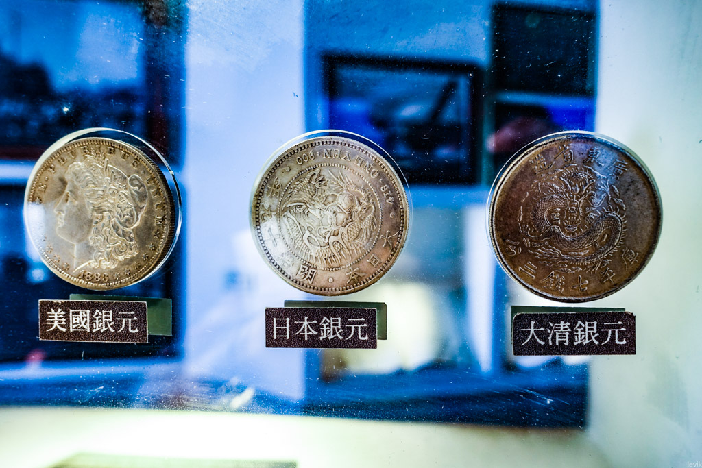 К примеру, вот несколько монет, которые выставлены в городке на юге Тайваня, где у европейцев была в своё время торговая колония. Эти монеты сохранились с конца XIX века, когда использовались в портовой торговле. Тут и американские деньги, и напечатанные на их основе азиатские эквиваленты. Заметьте, что все монеты одинакового размера: тогда, то, что на них отчеканено было не так важно, как то, сколько серебра в них содержалось.