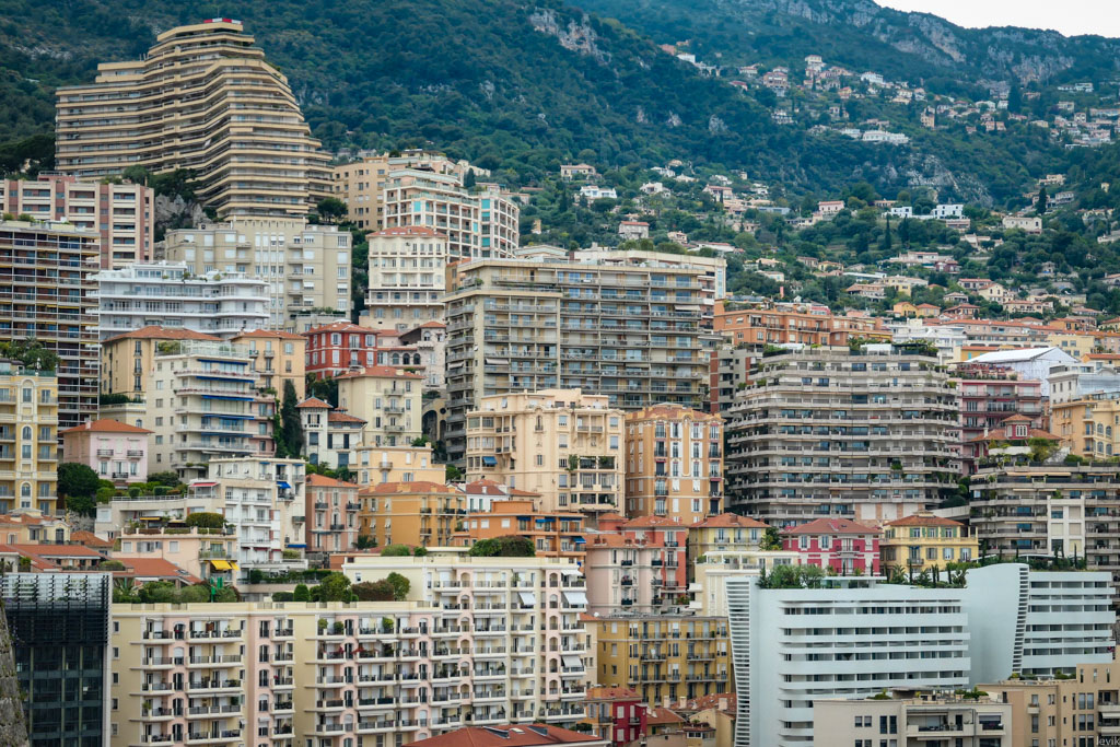 3. А что мы увидим, проехав 20 км на восток от Ниццы, и попав в Монако? Тут плотность застройки заметно выше, чем у соседей. Это отлично видно на следующей фотографии: в какой-то момент на склоне холма заканчиваются многоэтажные жилые дома - это и есть граница Монако и Франции.