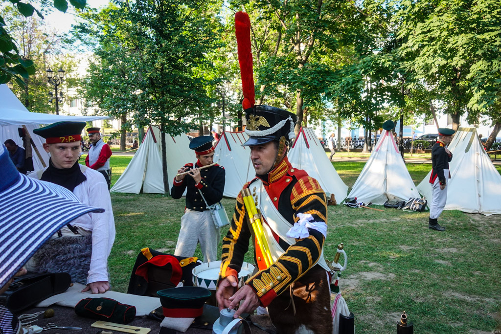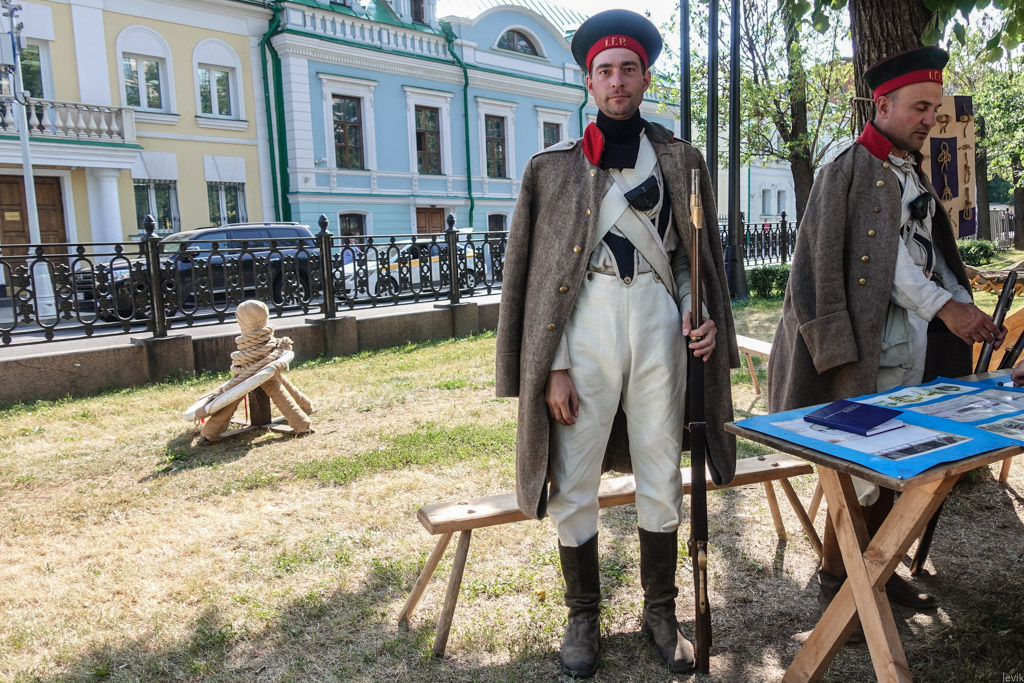 1. На самом деле, мне просто повезло приехать в Москву во время фестиваля "Времена и Эпохи", который, как мне сказали, проводится на Бульварном Кольце уже много лет подряд. В рамках фестиваля московские бульвары становятся эдаким живым музеем истории. Различные исторические эпохи здесь представлены людьми в соответствующих костюмах, и с подобающим инвентарём.