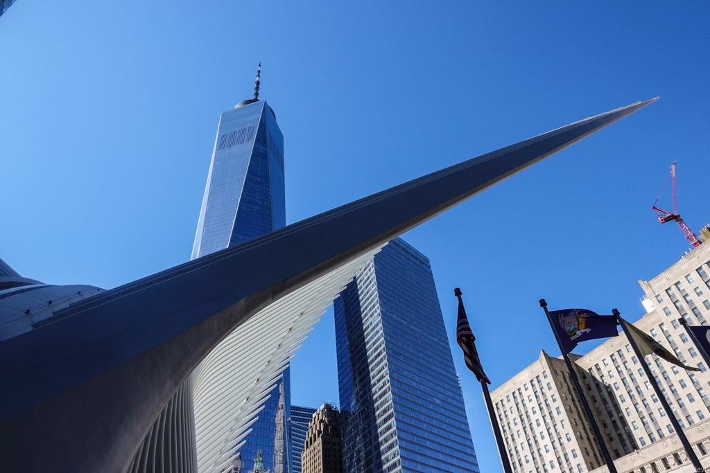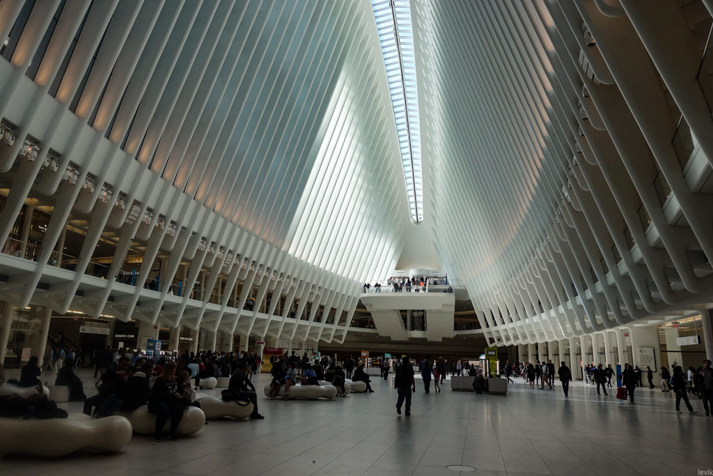 16. А рядом - построенный несколько лет назад транспортный узел, Oculus, который называли самой дорогой в мире станцией метро. Это футуристической пространство открыто круглосуточно, хотя магазины внутри конечно закрываются на ночь. Должен сказать, что оно гораздо круче выглядело, когда было новым и пустым. Но и сейчас неплохо.