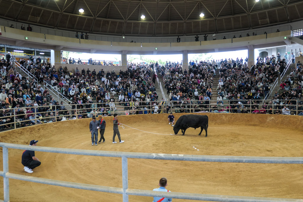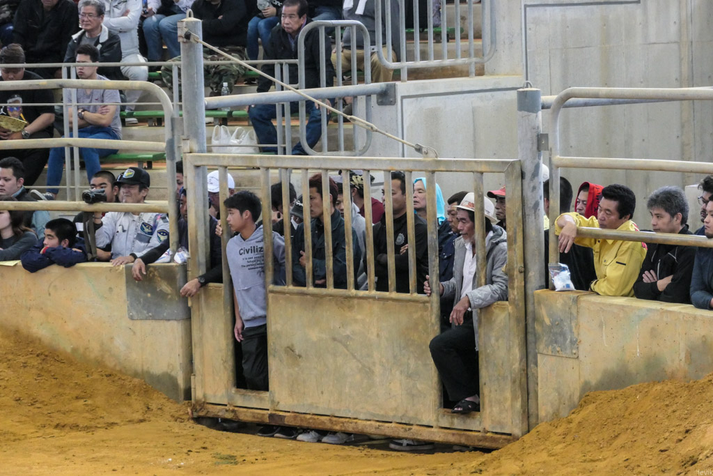 37. Проигравшего быка быстро отлавливают, и уводят с арены. Снаружи круглого здания стоят специальные грузовики, в которых привозят животных с фермы, и после схватки их возвращают туда.